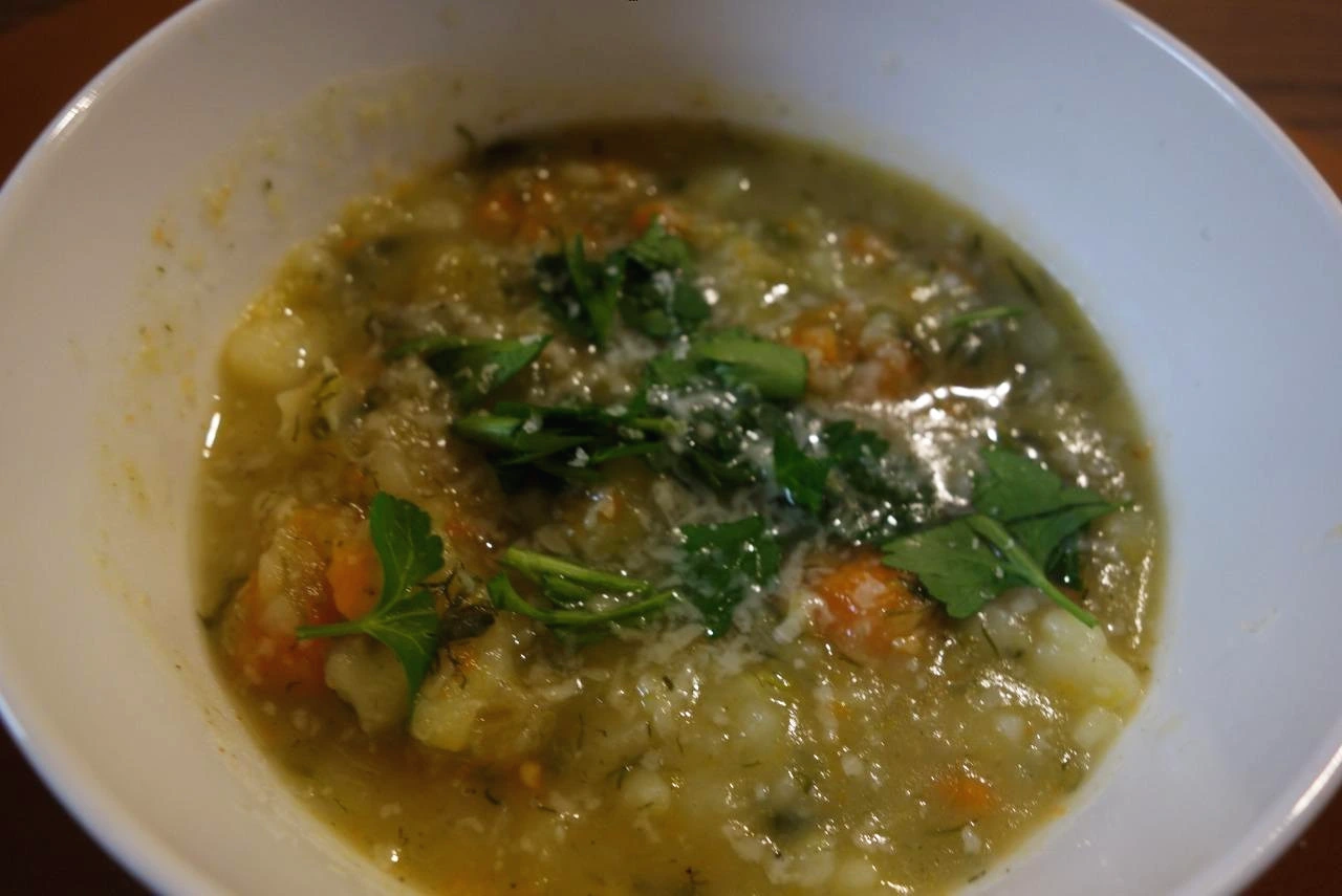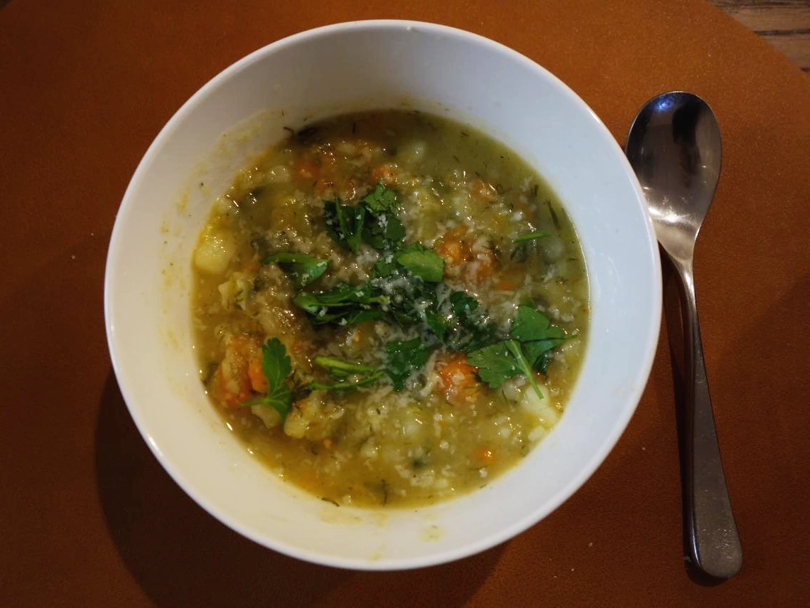 파슬리나 부추를 위에 뿌려 주고 파마산을 뿌려 주면 먹음직스러운 수프가 된다.