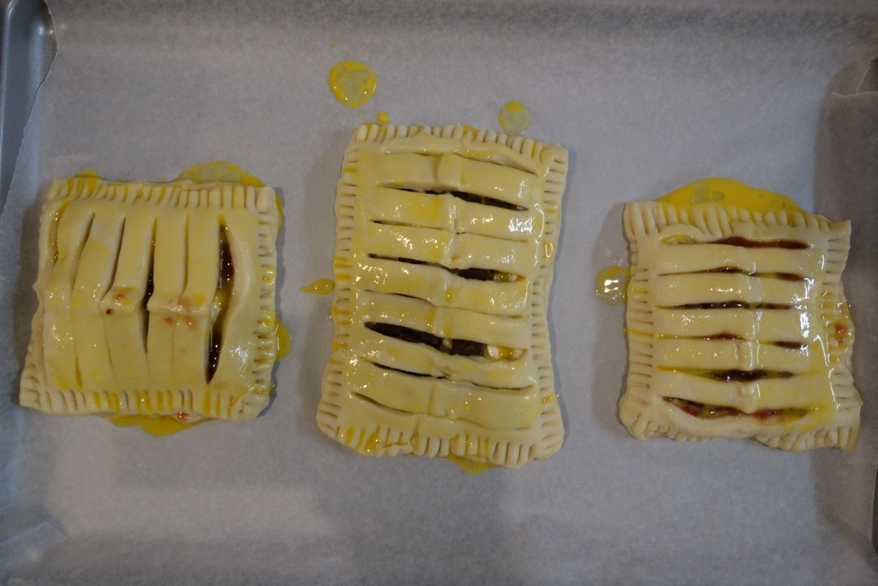 취향에 따른 파이 속 (잼, 과일, 크림, 초콜릿, 다진 고기 등등), 계란물 (달걀 1개 + 물 1 tsp)