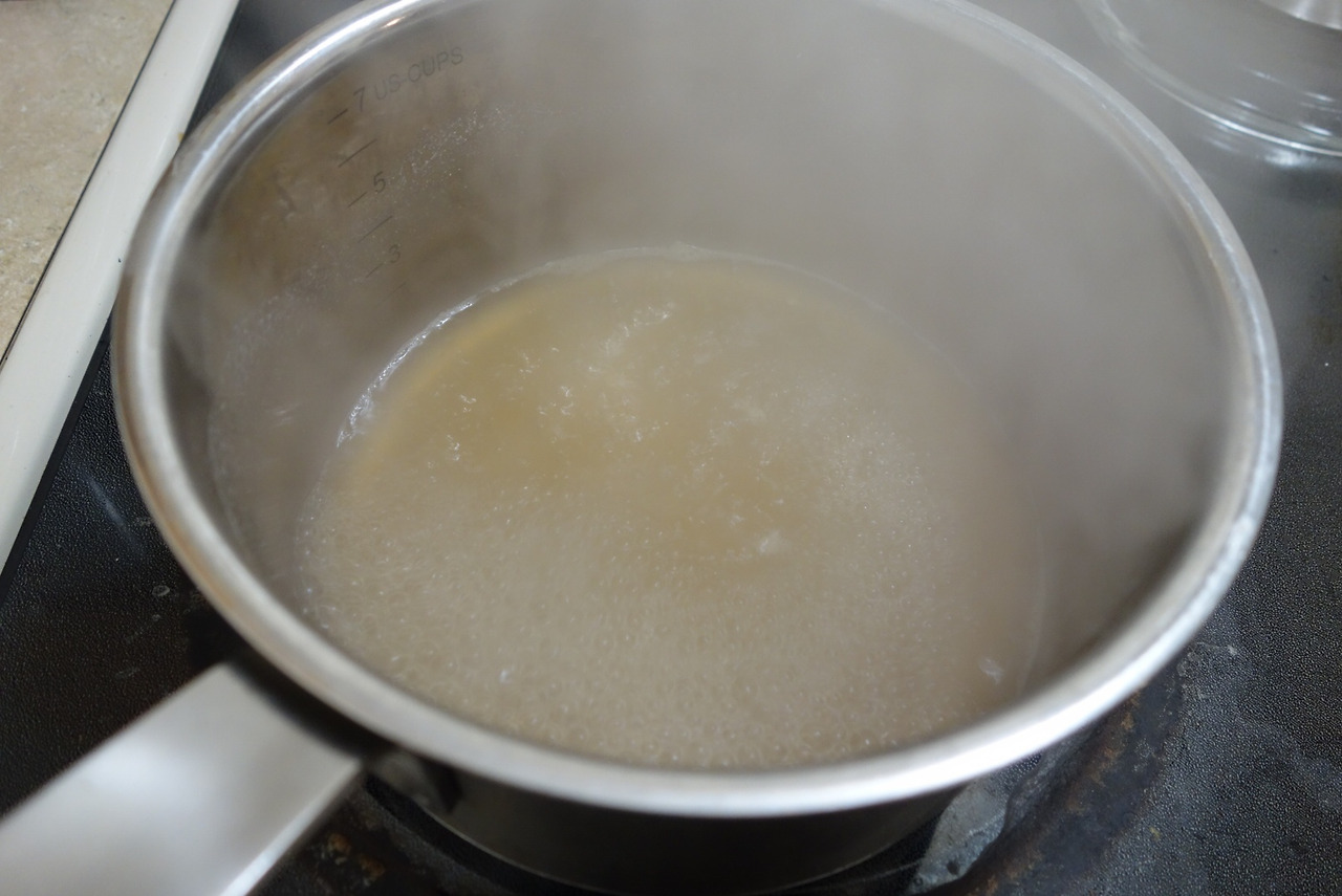 고기 글레이즈는 스테이크를 굽고 난 "육수" 정도로 해석하면 되는데, 스테이크를 아직 굽기 전이라 비프 부이용을 이용해서 소고기 육수를 조금 만들었다. 육수를 만들어 놓은 다음, 화이트 와인과 샬롯, 후추를 넣고 끓인 후, 육수를 넣고 졸인다.