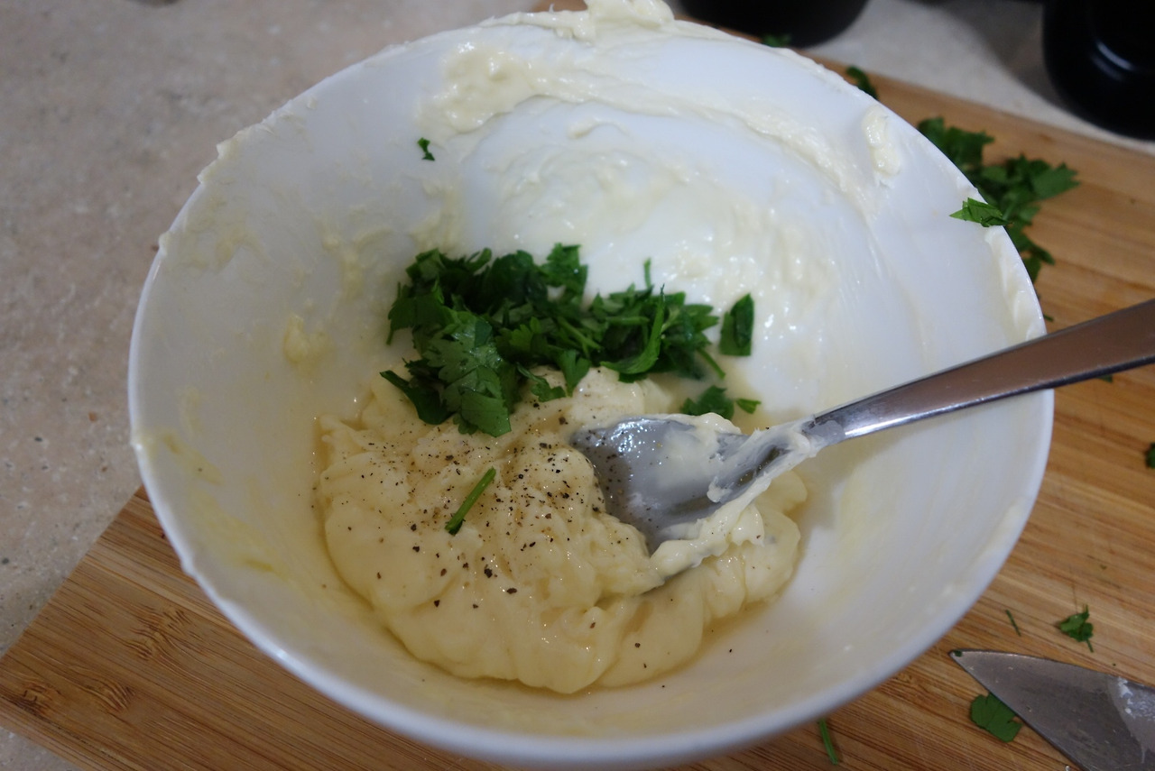 잘 뭉쳐졌다 싶으면 파슬리와 소금, 후추를 더 넣고 섞는다.