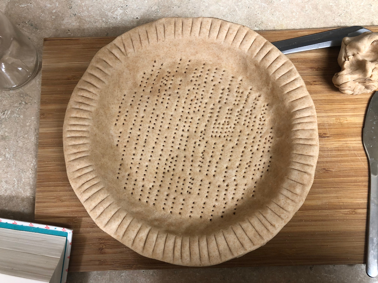 10. 페이스트리 반죽 바닥에 포크로 구멍을 뽕뽕 뚫는다.