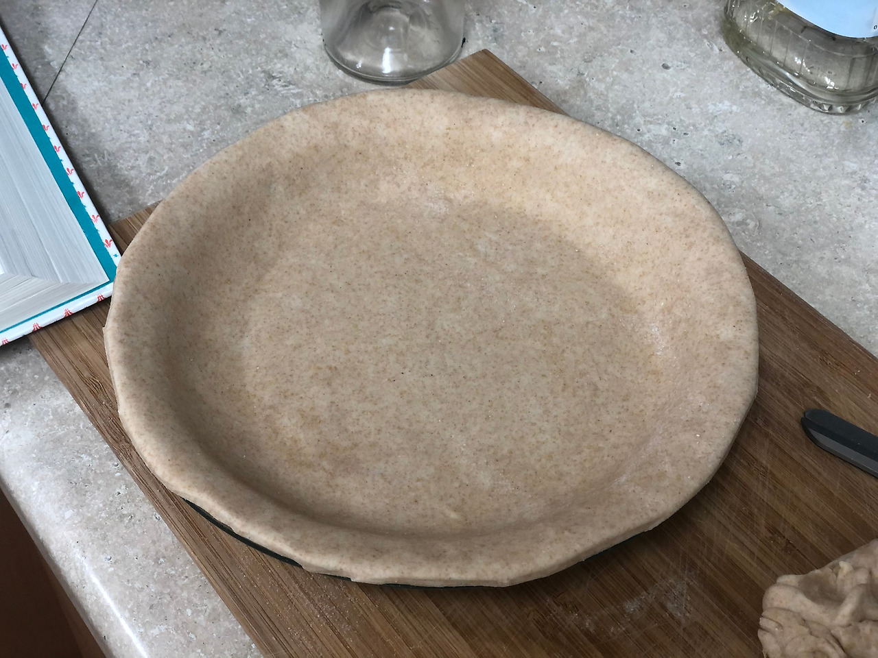 8. 파이 접시에 반죽을 올린다. 튀어나오는 가장자리 부분은 가위로 깔끔하게 잘라준다.