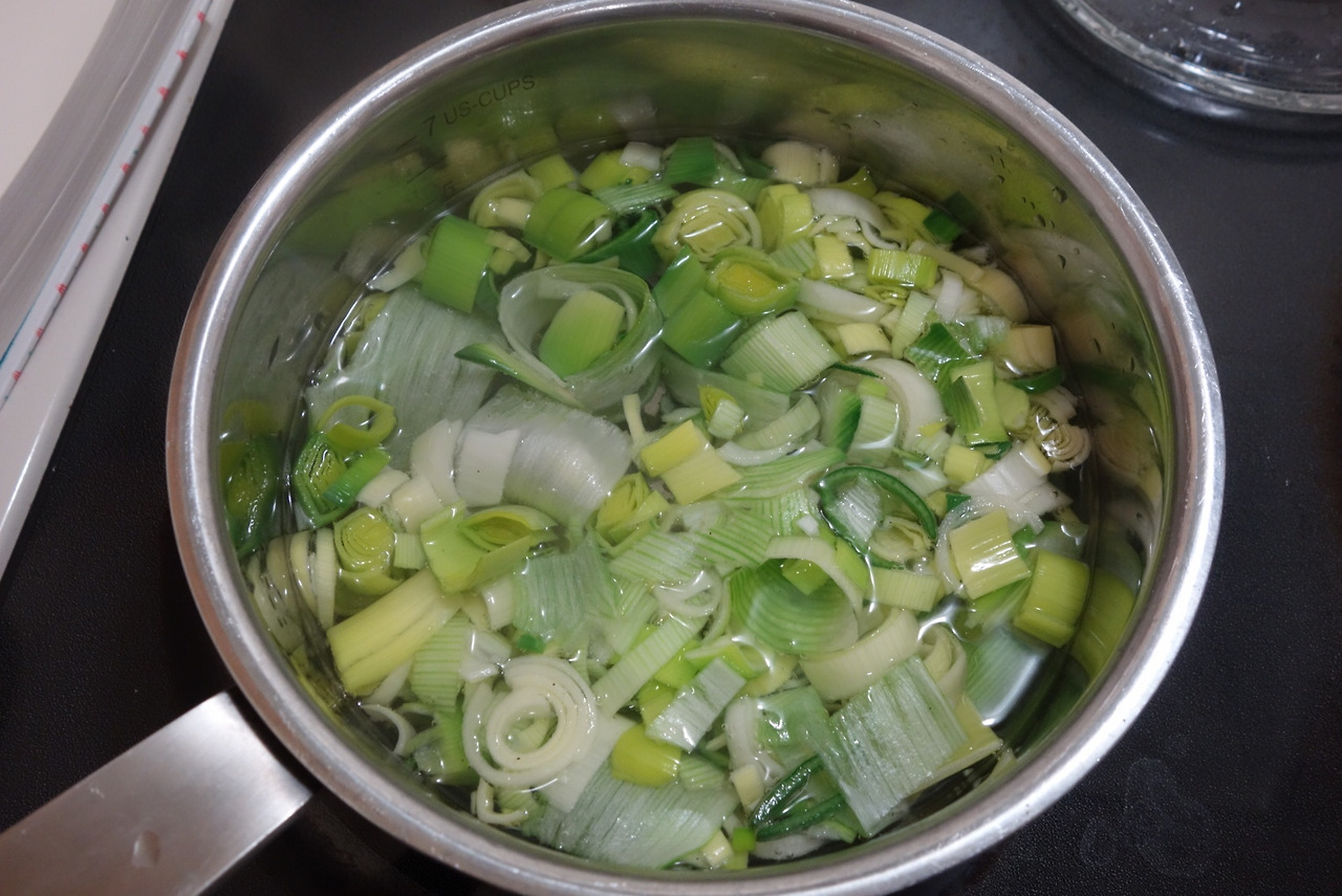 필링을 만들 차례. 대파 필링은 양파와는 다르게 물에다가 넣고 끓이는 과정을 거친다.
