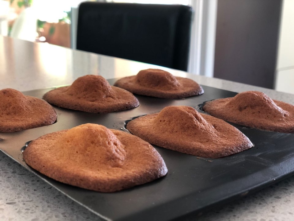 반죽을 틀의 80%만 채우는 것을 추천하는 이유는 오른쪽 사진에서 찾을 수 있다. 나처럼 욕심을 부려 100%를 다 채워 굽게 되면 마치 길거리 붕어빵처럼 테두리가 생긴다. 그 부분이 바삭하다며 좋아하는 사람들도 있지만, 확실히 정량만 넣고 구웠을 때만 완벽한 조개 모양의 마들렌을 만날 수 있다. 어쨌거나 나는 '홈베이킹에 실패란 없다'라고 믿는다. 반죽에 들어가는 재료들이 맛없을 수 없는 조합인 경우가 대부분이기 때문이기도 하다. 믿는 구석이 있으니 맘껏 창의력을 발휘해보는 것이다.
