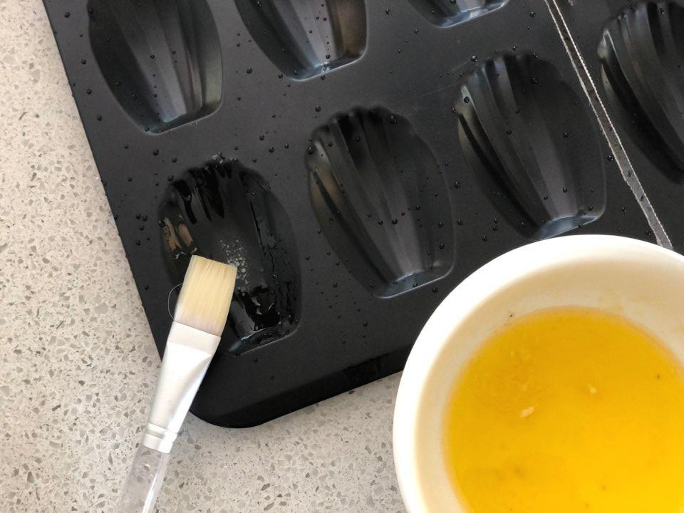 2. 마들렌 틀에 녹인 버터를 골고루 발라 냉장고에 넣어둔다. 이 과정을 쿨하게 생략할 경우 완성된 마들렌이 틀에 붙어 질척거려 쿨하지 못한 비주얼을 얻게 된다 (경험담). 버터가 없다면 식용유로 대체할 수 있다.