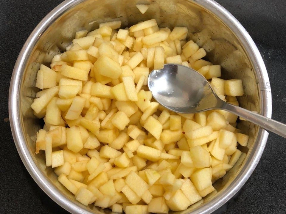 7. 타르트지 안에 들어갈 사과를 8컵 분량으로 잘게 썬다.