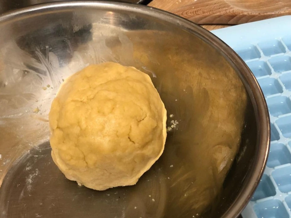 4. 손바닥 끝으로 반죽을 치대 준 다음 종이 포일로 감싸 냉장고에 2시간 이상 보관한다.