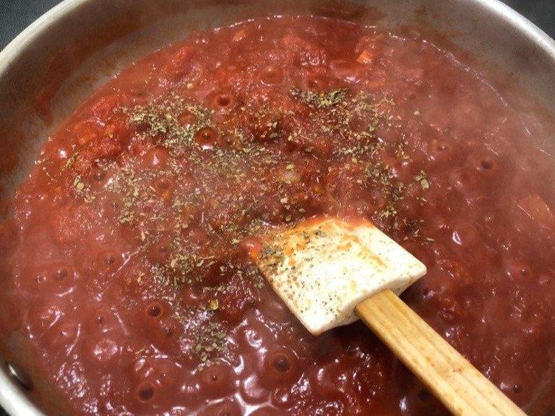 6. 가지에 소스가 잘 배어들도록 섞다가 바질, 오레가노, 파슬리를 넣어 향을 더해 완성한다.