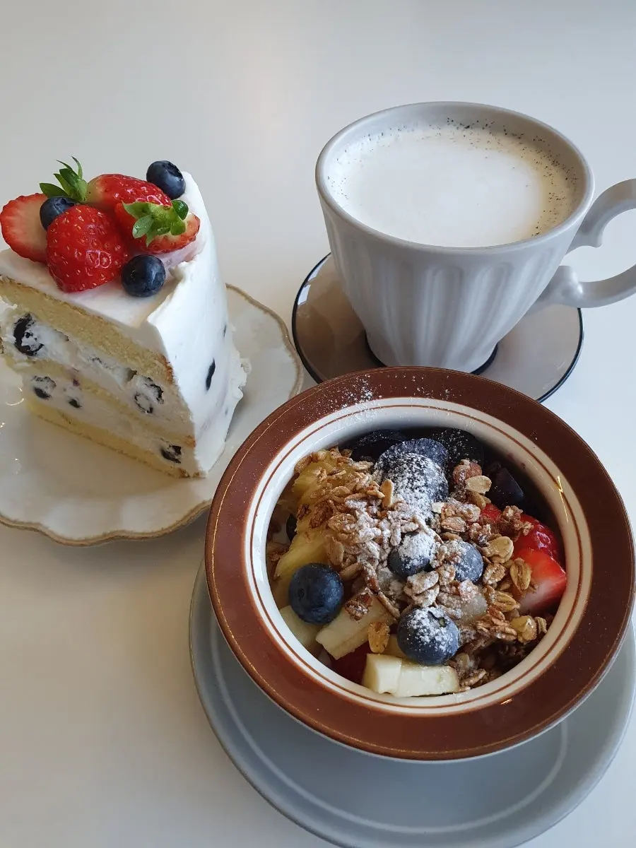1층에는 금방 도착한 싱싱한 온갖 종류의 과일 상자가 줄을 이어있다. 여기가 과일가게인지 카페인지 궁금해지도록 과일이 가득가득하다. 음료도 케이크도 과일을 한가득 품고 있다. 그래서 딸기케이크는 묵직하고 크림은 고소하다.