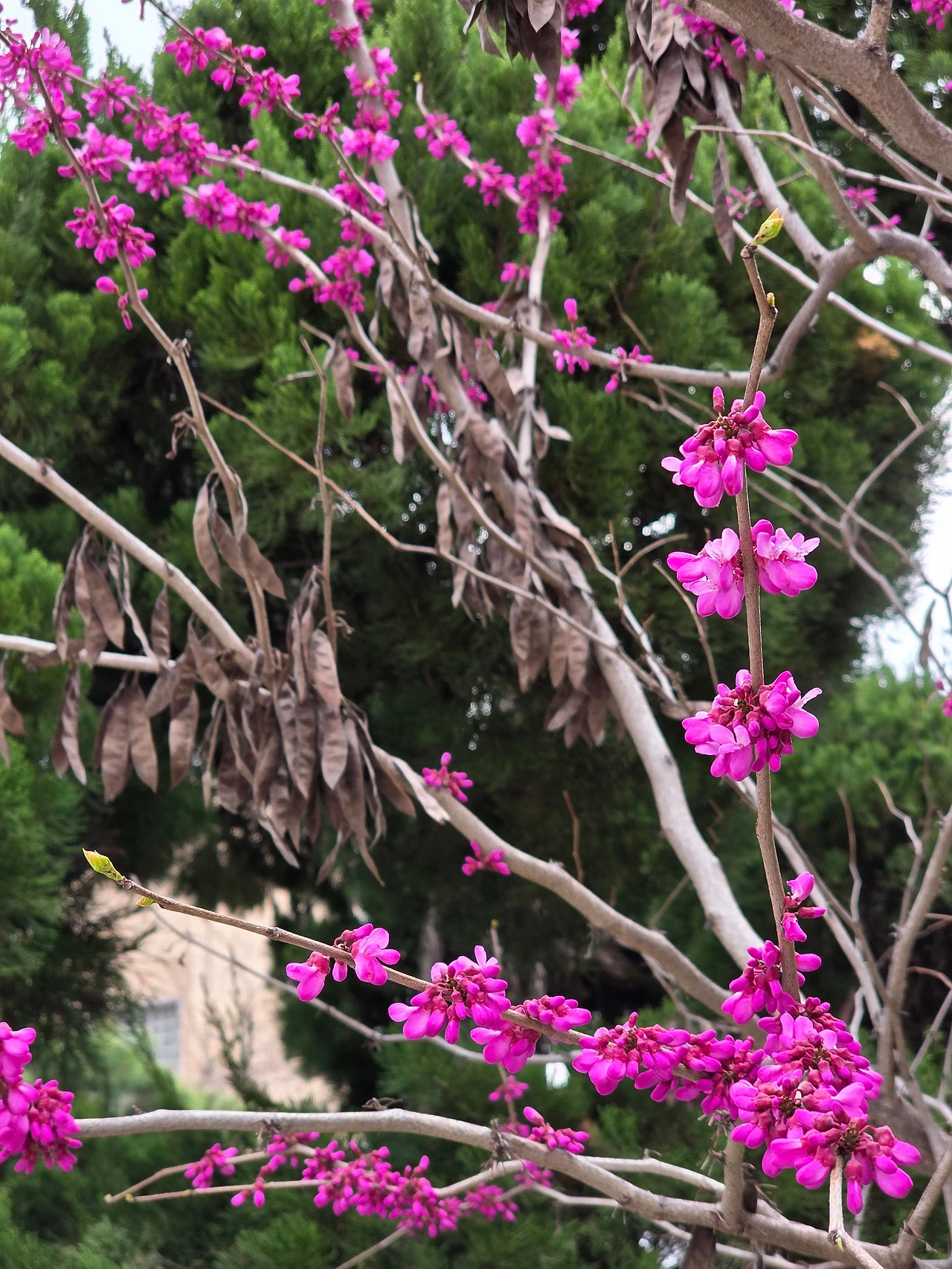 홍자색의 짙은 꽃색이 봄의 생동감을 더해주는 때문인지 대다수의 학교에는 몇 그루의 박태기나무가 있습니다. 근무하는 지금의 학교에도 박태기나무가 있습니다. 올해는 2년 전과 달리 박태기나무가 4월에 피었습니다. 지난해 결실을 맺은 콩꼬투리 열매를 주렁주렁 그대로 매단 채 꽃이 피고 있었습니다.