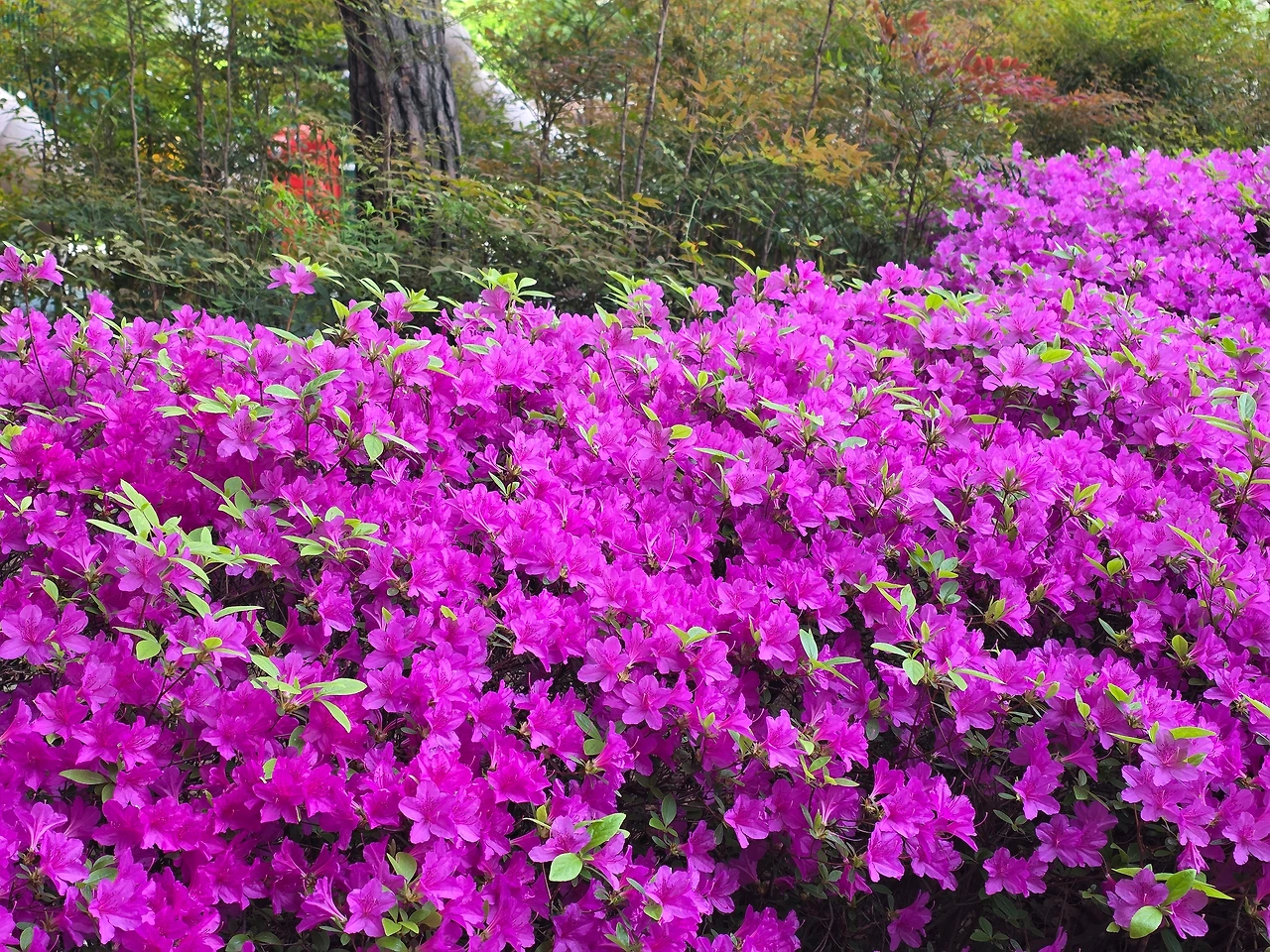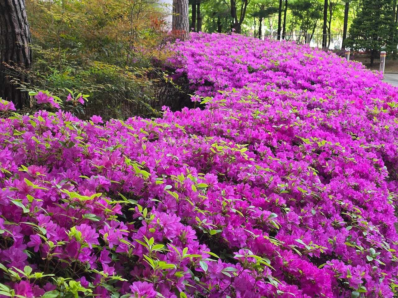 영산홍은 아파트 화단은 물론이고 사람들 많이 모이는 유원지 등 어느 빈틈이든 장식하기에 가장 좋은 원예종 나무의 하나로 조경수의 15% 이상을 차지할 정도로 우리나라 정원수 중에서 가장 많이 심는 나무라고 합니다. 오늘날의 영산홍은 일본에서 자생하는 철쭉에서부터 비롯되었습니다. 17~19세기에 일본은 철쭉에서 붉거나 분홍, 보라색 등 다양한 색깔로 품종을 개량했는데, 이 품종들이 19세기 후반에서 20세기 초반에 우리나라에 들어와 조경수로 널리 퍼지기 시작하였습니다.