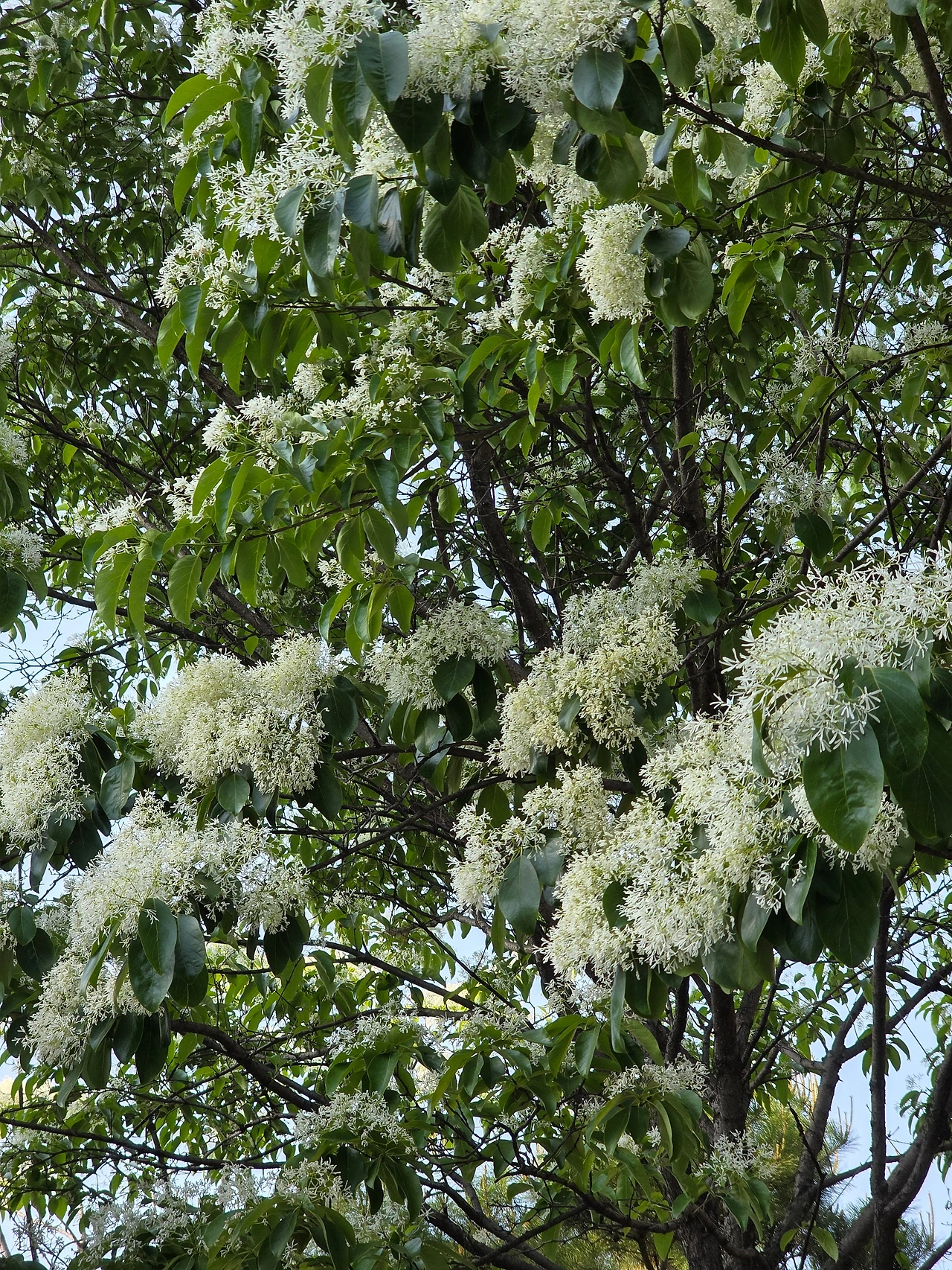 이팝나무 중에는 유난히 잎을 다 덮을 만큼 탐스럽게 화려한 흰빛으로 꽃을 피우는 나무가 있습니다. 저는 그 이유가 햇빛을 많이 받고 땅의 기력이 좋아 특별히 건강하게 자란 나무이기 때문이라 생각했는데, 다른 이유 하나를 발견하였습니다. 이팝나무는 특이하게도 수술만 있는 '수꽃 그루'와 암술과 수술이 모두 있는 '양성화 그루'가 따로 있는 '수꽃-양성화 딴그루' 나무라고 합니다. 2016년 학술지 <플로라(Flora)>에 경희대 생물학과 생물계통연구실 연구진이 발표한 논문에 따르면, '수꽃-양성화 딴그루'는 전체 꽃식물 가운데 5%로 극소수 존재한다고 하고, 수꽃 그루는 열매는 맺지 않고 꽃가루 기증자로서의 역할만 한다고 합니다. 그리고 많은 연구자들이 수꽃-양성화 딴그루는 결국 암꽃-수꽃 딴그루로 가는 중간단계라고 해석하고 있습니다. 수꽃나무와 양성화나무는 겉으로도 확연하게 차이가 나서 수꽃나무보다 양성화나무가 더 많은 꽃을 피우고 더 풍성한 꽃을 피운다고 합니다. 멀리서 보아 잎을 다 덮어 수북한 한 공기의 흰 쌀밥을 고봉으로 담은 것 같은 모양으로 꽃을 피운 것은 아마도 수꽃과 암꽃이 같이 피는 양성화나무인 것 같습니다. 옛 조상들이 이팝나무를 통해 한해 농사의 풍년을 기원한 것처럼 저도 한 해의 행복한 일들을 기원하겠습니다.