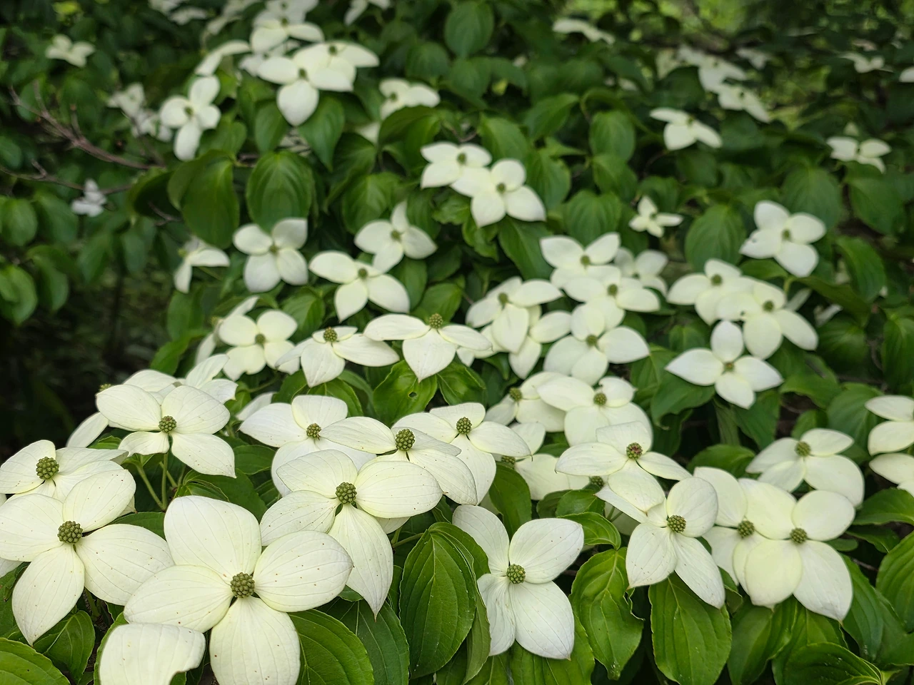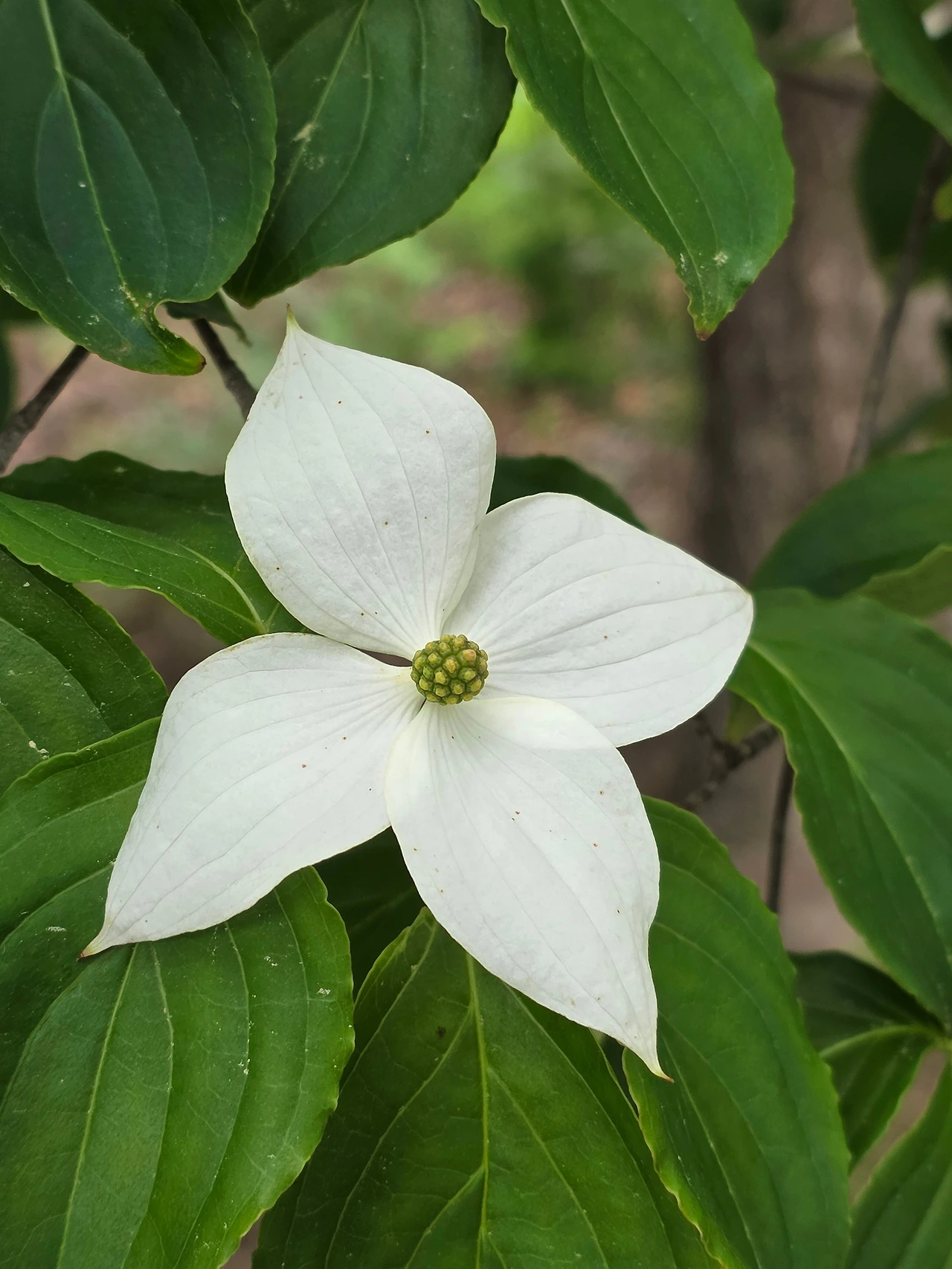 눈부시도록 빛나는 흰 빛의 꽃잎 네 장이 나비처럼 펄럭이면서 그 중앙을 호위하고 있으면 이것은 산딸나무가 맞습니다. 그런데 여기엔 흥미로운 사실 하나가 숨겨져 있습니다. 네 장의 눈부신 꽃잎은 사실 꽃잎이 아니라 꽃을 돋보이게 하도록 특별한 임무를 맡은 나뭇잎(포엽)이라는 사실을요.