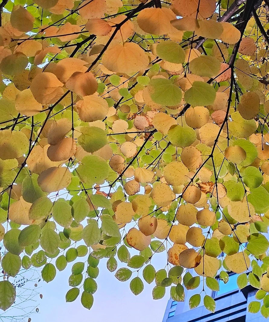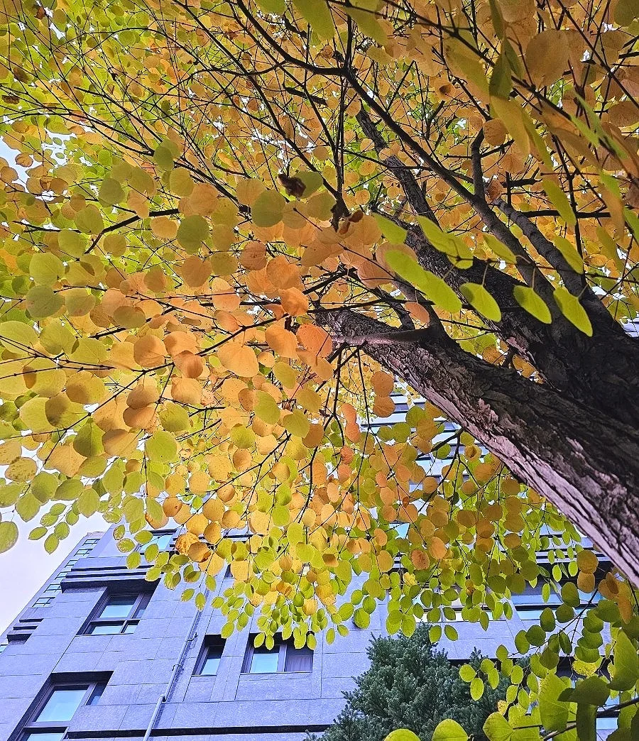 이 계수나무 잎사귀들은 가을이 되면서 발군의 사랑스러움을 더욱 휘황찬란하게 드러냅니다. 노랗게 물든 잎사귀들이 만들어 내는 사랑스러움은 또 다른 아름다움의 극치를 이루면서 계수나무 향기에 대해 모르는 사람이라 해도, 후각이 이끄는 대로 걷다 보면 계수나무에 다다를 수 있으리라 확신하게 됩니다.