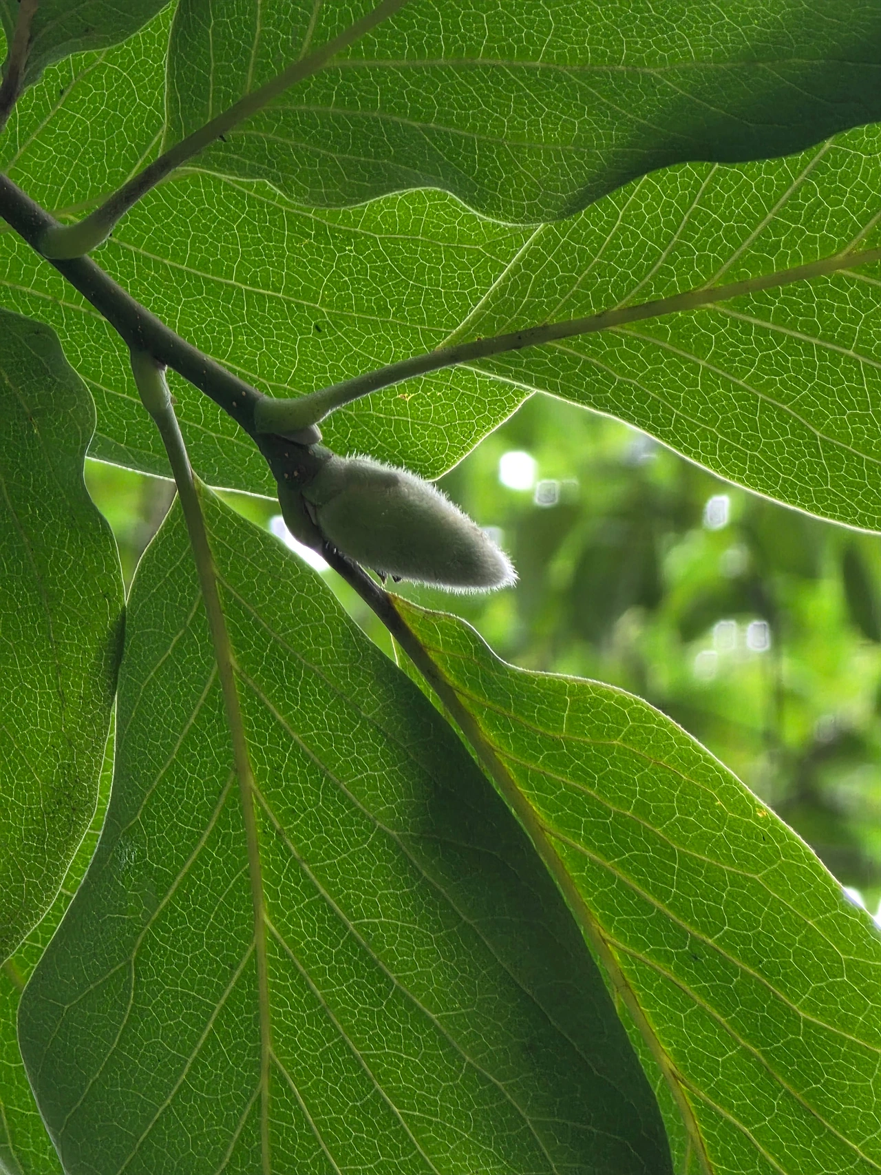목련의 반질반질 윤기 나는 도톰한 나뭇잎 사이에서 목련의 '겨울눈'을 만났습니다. 나뭇잎 다 진 겨울에 모직 코트처럼 잔털이 따뜻하게 드러난 겨울눈은 사실 이 계절의 작품입니다. 만물이 생동하는 6월에서 9월 무렵에 내년을 미리 설계하고 준비하는 것이지요.