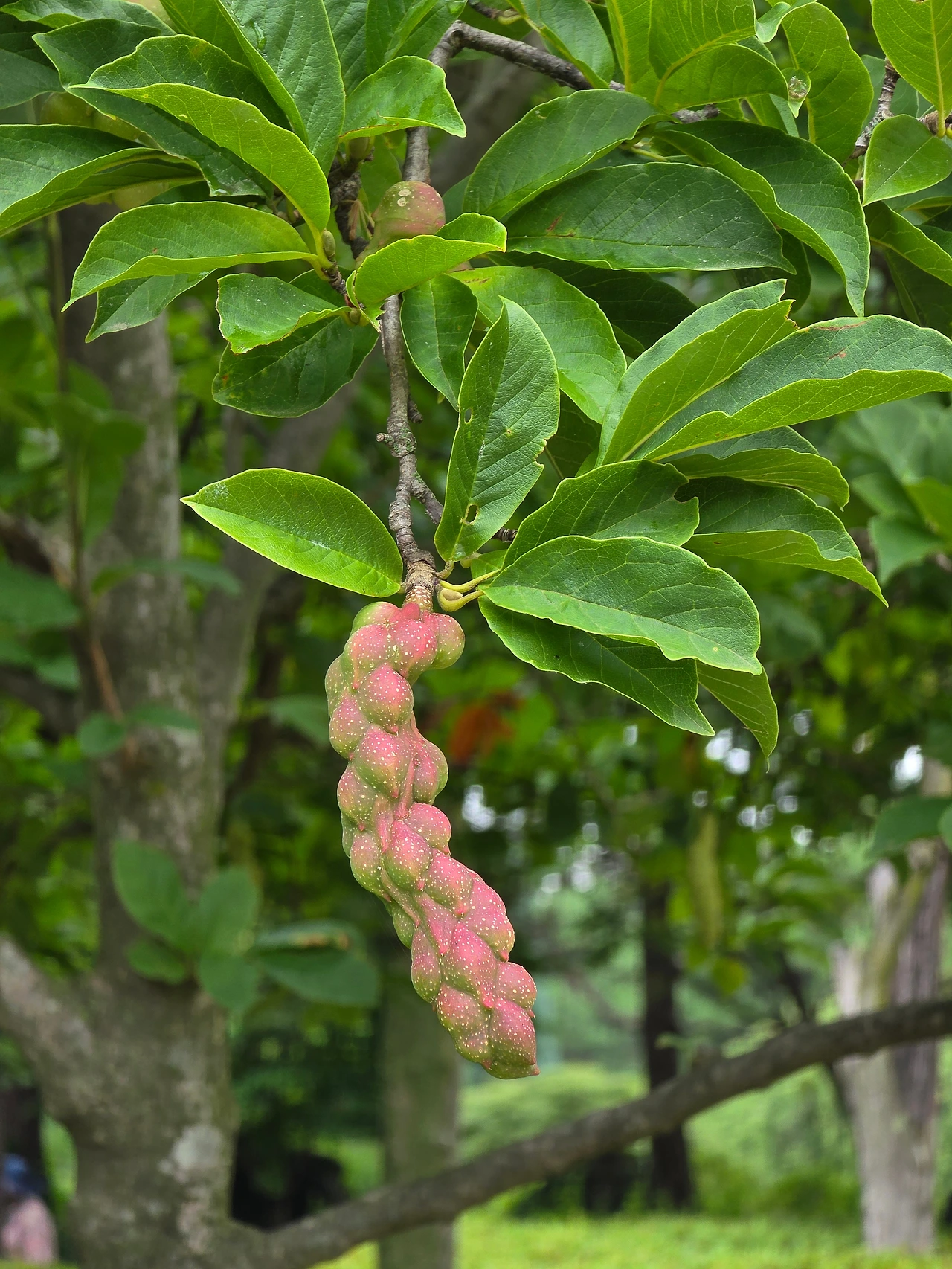 더하여 봄에 핀 목련의 꽃이 이 계절에 결실을 맺었습니다. 목련의 열매가 연두색에서 분홍색으로 발그레하게 물들어가고 있습니다. 목련의 열매는 좀 모양이 특이합니다. 이런 목련의 열매를 '골돌' 열매라고 합니다. 골돌은 씨방이 여래 개로 나뉘어 있고, 씨앗이 익으면서 씨방이 벌어져 씨가 드러나는 형태의 열매입니다.
