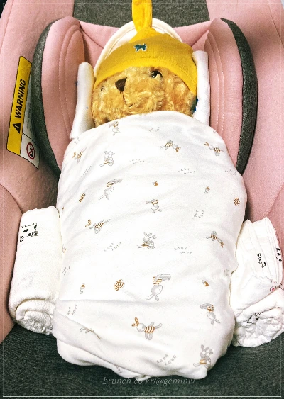 신생아실에서 애월이를 픽업하고 카시트에 앉혀 차에 태우는 모든 과정 역시 처음 애월이를 케어하던 그날처럼 허둥지둥했다. 카시트에 제대로 태우는 법을 연습했었건만 허사였다. 우리는 당황하면서 신생아실 선생님이 겉싸개 해준 그대로 애월이를 카시트에 고정시키고 출발할 수밖에 없었다. 내 머릿속에는 「애월이, 황달, 황달, 황달」만이 고장 난 카세트테이프처럼 무한반복되었고 긴장감으로 몸이 달아올라서 추운 줄도 몰랐다. 남편 머릿속에는 무엇이 떠다녔는지 모르겠다. 하지만 그도 나와 마찬가지로 긴장감에 사로잡혔으리라.