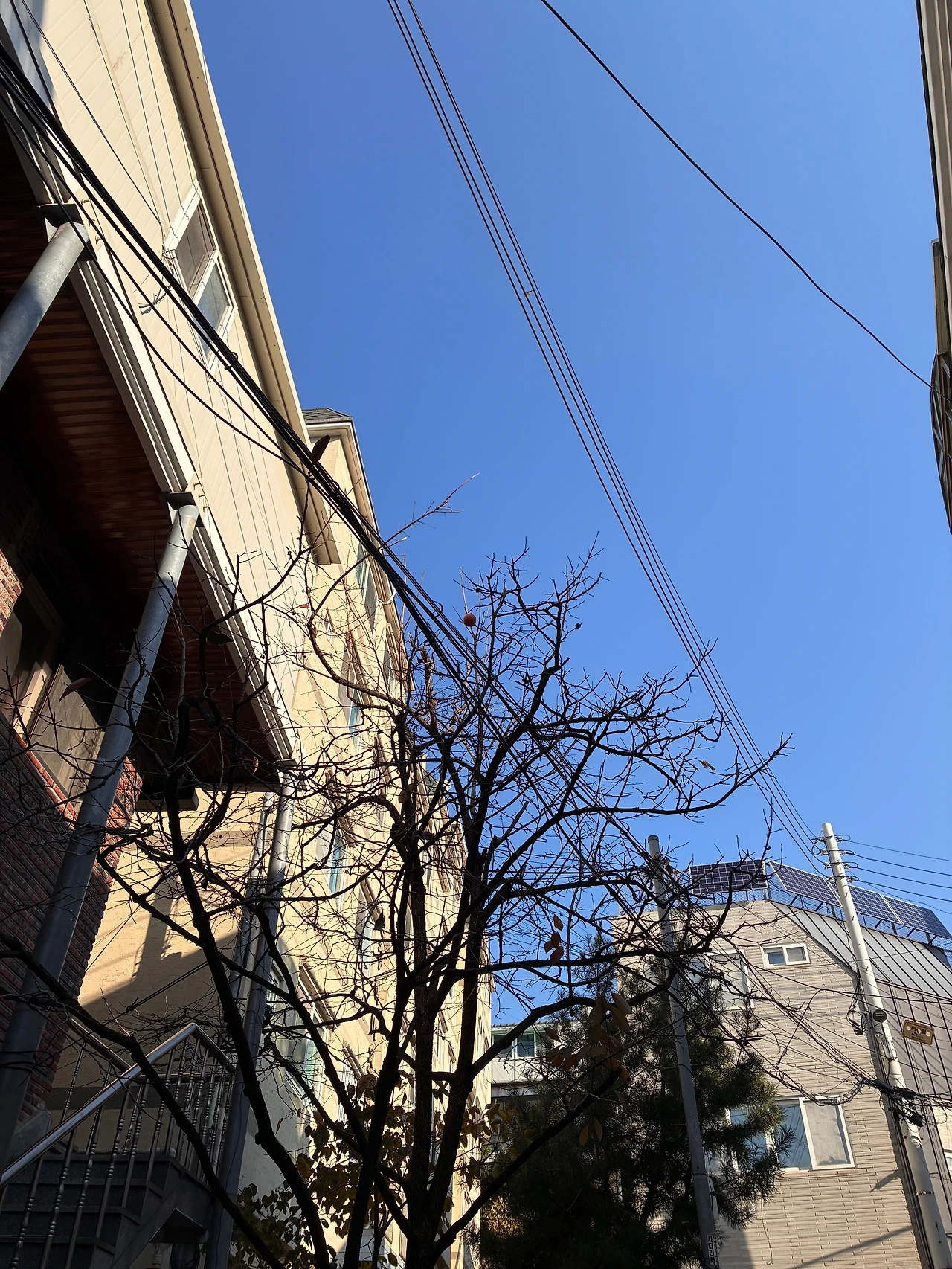 누군가 이런 생각 없이, 당연히 하나 남겨놔야지 하는 뇌리에 꽂혀있는 무의식으로 남겨진 '까치밥'일 수도 있지만, 각박한 도시 속에서도 한국인의 '정'이라고 하는 것이 아직까지 남아 있음을 알게 되었습니다. 이사를 와서 경험한 감 나누기, 반상회, 까치밥의 발견은 아직도 우리에겐 '함께'라는 ‘정겨움‘이 남아 있음을 확인할 수 있었습니다.