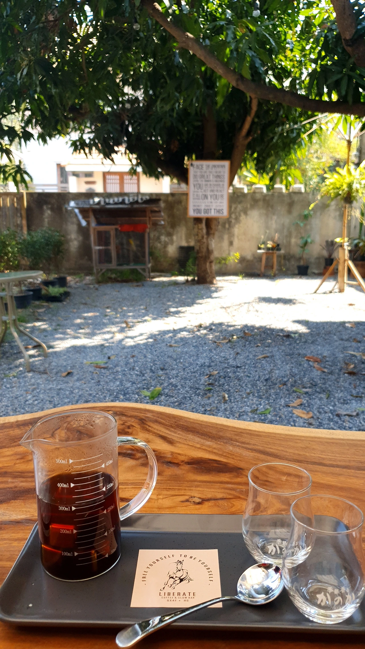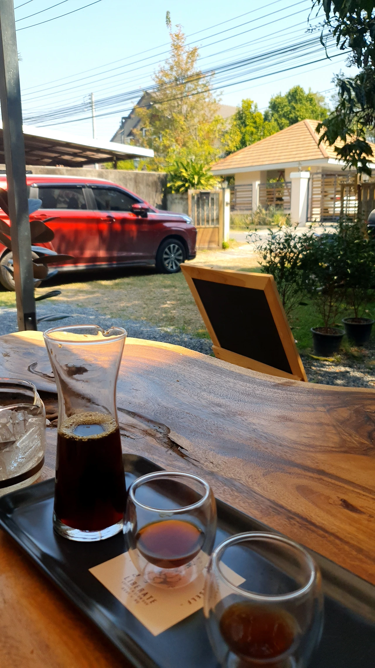 우리뿐인 마당에서 맛 좋은 핸드드립 커피를 마시고 있자니 시간이 천천히 흐르는 것 같았다. 이렇게나 정성스러운 한 잔이 100밧(4000원)도 채 하지 않는다니.
