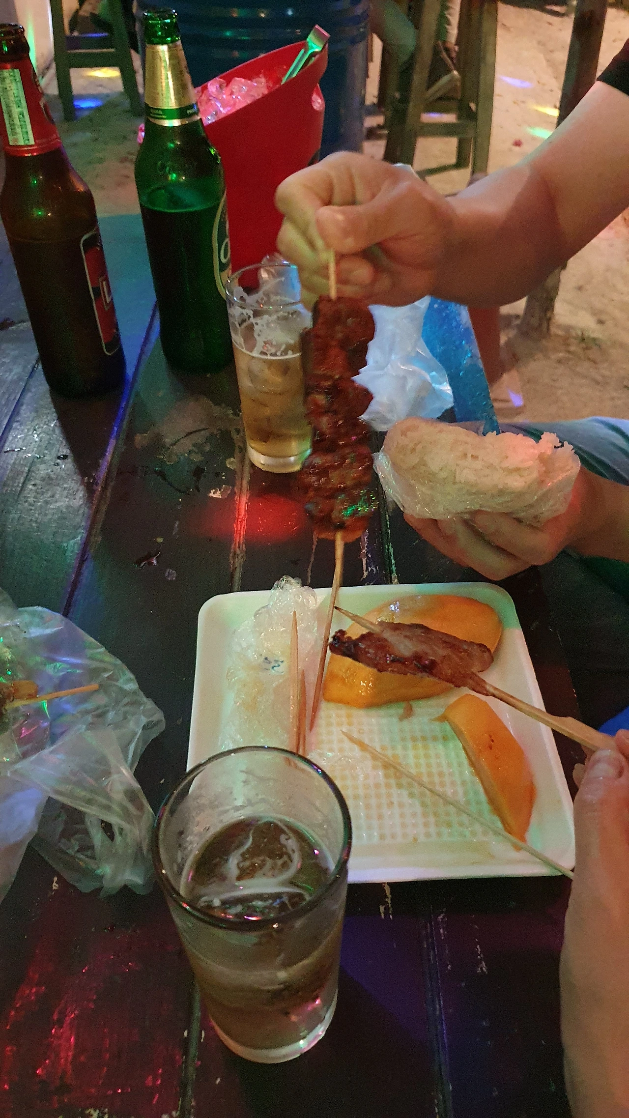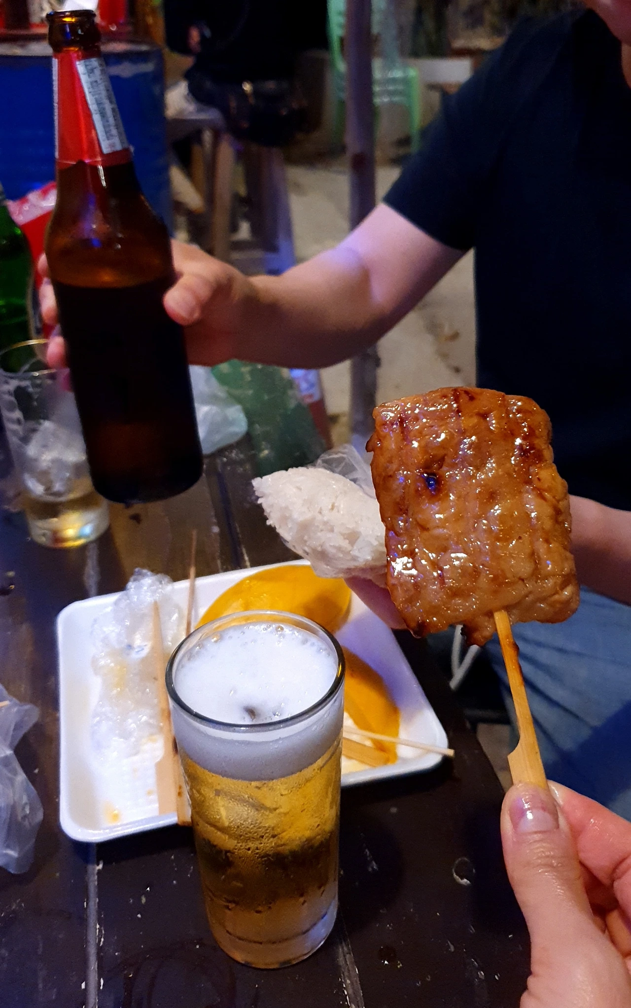 게이트시장 입구 앞 가판에서 사먹던 꼬치들. 주문하면 숯불에 다시 한번 뜨뜻하게 데워주신다. 납작한 단짠 떡갈비 꼬치와 쫄깃한 찰밥 세트가 다른 곳에서 먹어본 것 보다도 훨 맛났는데, 현지인들이 아침메뉴로도 즐겨 찾는 조합이라고 한다.