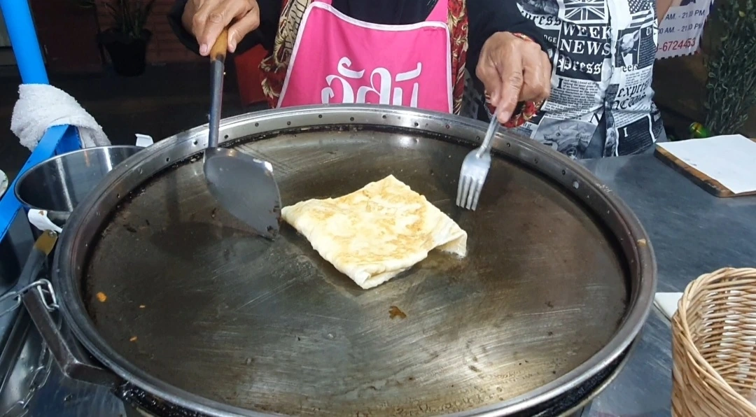 치앙마이 게이트 바로 길 건너 로띠 가판. 늘 꺼내놓으시는 코코넛 오일병이 그냥 전시용인가 여쭤봤더니 "이걸로 튀긴다"고 하셨다. 그 덕분인지 왠지 다른 곳보다 맛도 훌륭하다. 반죽을 전병처럼 얇게 펴 지글지글 익혀주시는 과정을 보다 보면 절로 평온해지는 로띠멍 경험할 수 있다.