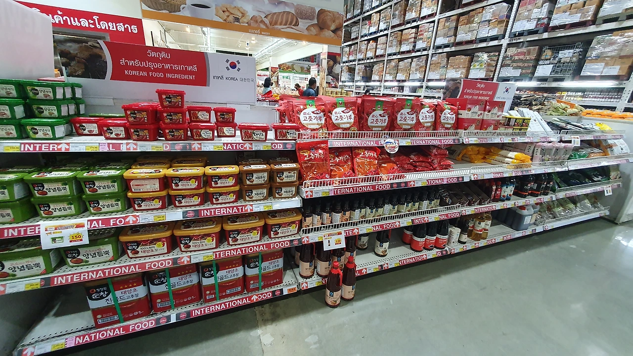 우리나라의 백화점 식품관정도 되는 곳 같았다. 규모가 크지는 않지만 인테리어, 제품 종류, 진열 방식 하나하나 중~고급이다. 한국 식품 또한 매크로에서는 주로 냉동이나 레토르트를 판매했다면 여기에선 다양한 냉장 김치와 양념류까지도 발견할 수 있었다. 저렴하지는 않지만 시장이나 매크로에서 살 수 없는 고급 식품이나 생활용품을 구매할 수 있는 곳이었다. 가족 선물로 구하러 다닌 피부용 코코넛오일도 여기서 샀다(590밧/1L).