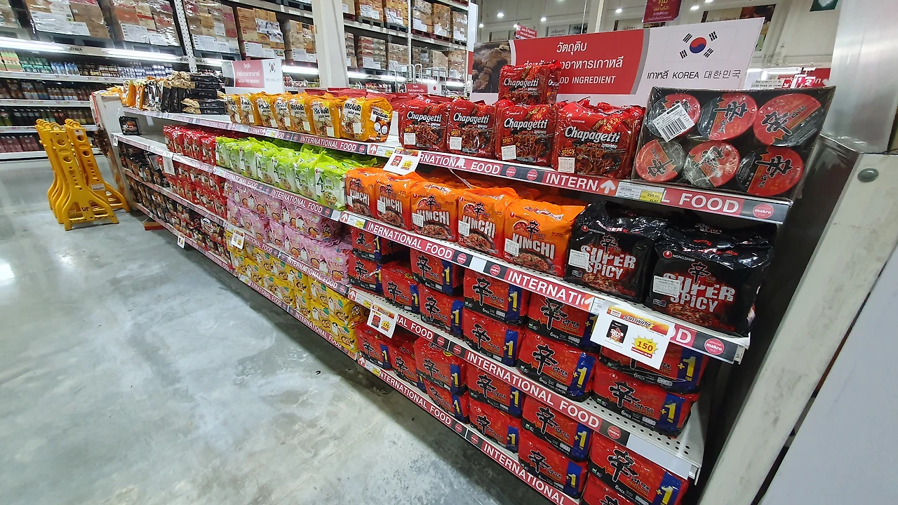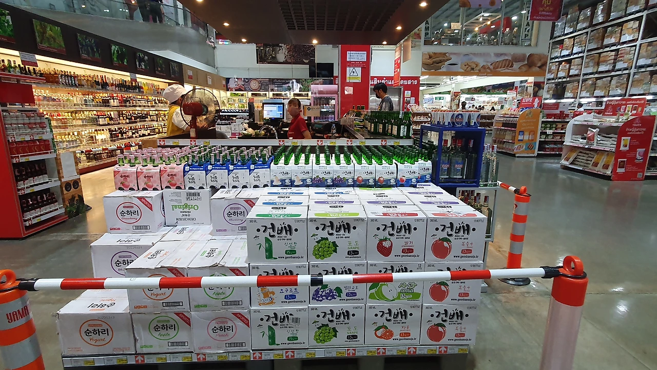 재미있게도 들어가자마자 소주 궤짝들이 반겨준다. '건배', '태양' 등 초록병에 한글 이름을 가진 짝퉁 과일소주들을 현지인은 물론이고 외국인 관광객들도 물처럼 들고 다니는 모습을 쉽게 볼 수 있었는데, 매크로에서도 큰 비중을 두고 판매 중이었다. 이외에도 고추장, 된장, 라면 등 한국식품이 진열된 코너들의 비중이 꽤 컸는데 한식에 대한 수요가 꽤 탄탄한 듯 보여 뿌듯했다.