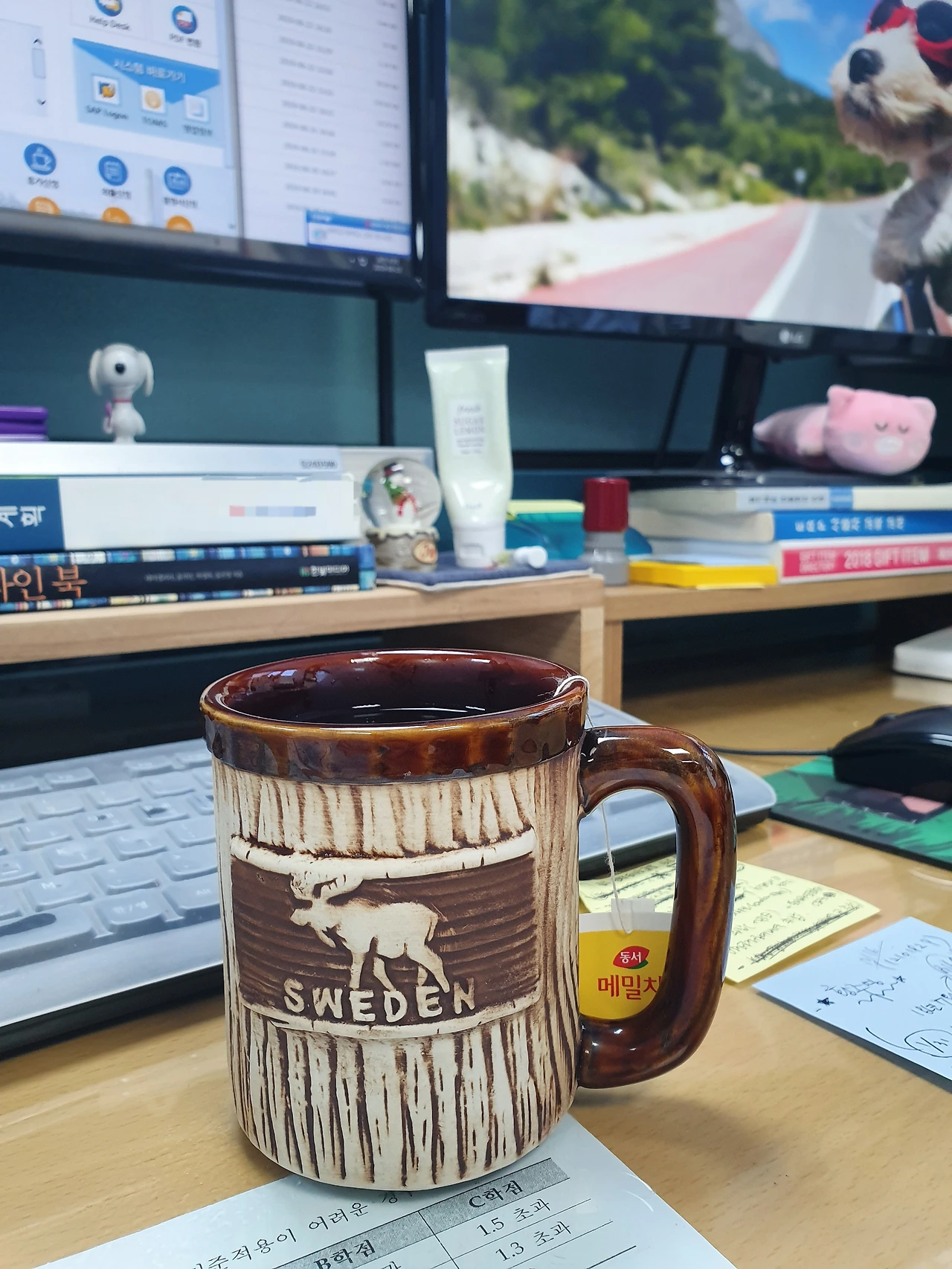 일주일 후, 남편이 귀국길 공항에서 연락을 해왔다. 기념품 가게인데 마음에 드는 게 있냐면서 사진과 함께. 주욱 확대해서 보다 보니 마음에 드는 컵이 한눈에 들어왔다. 그런데 문득 호기심이 일었다.