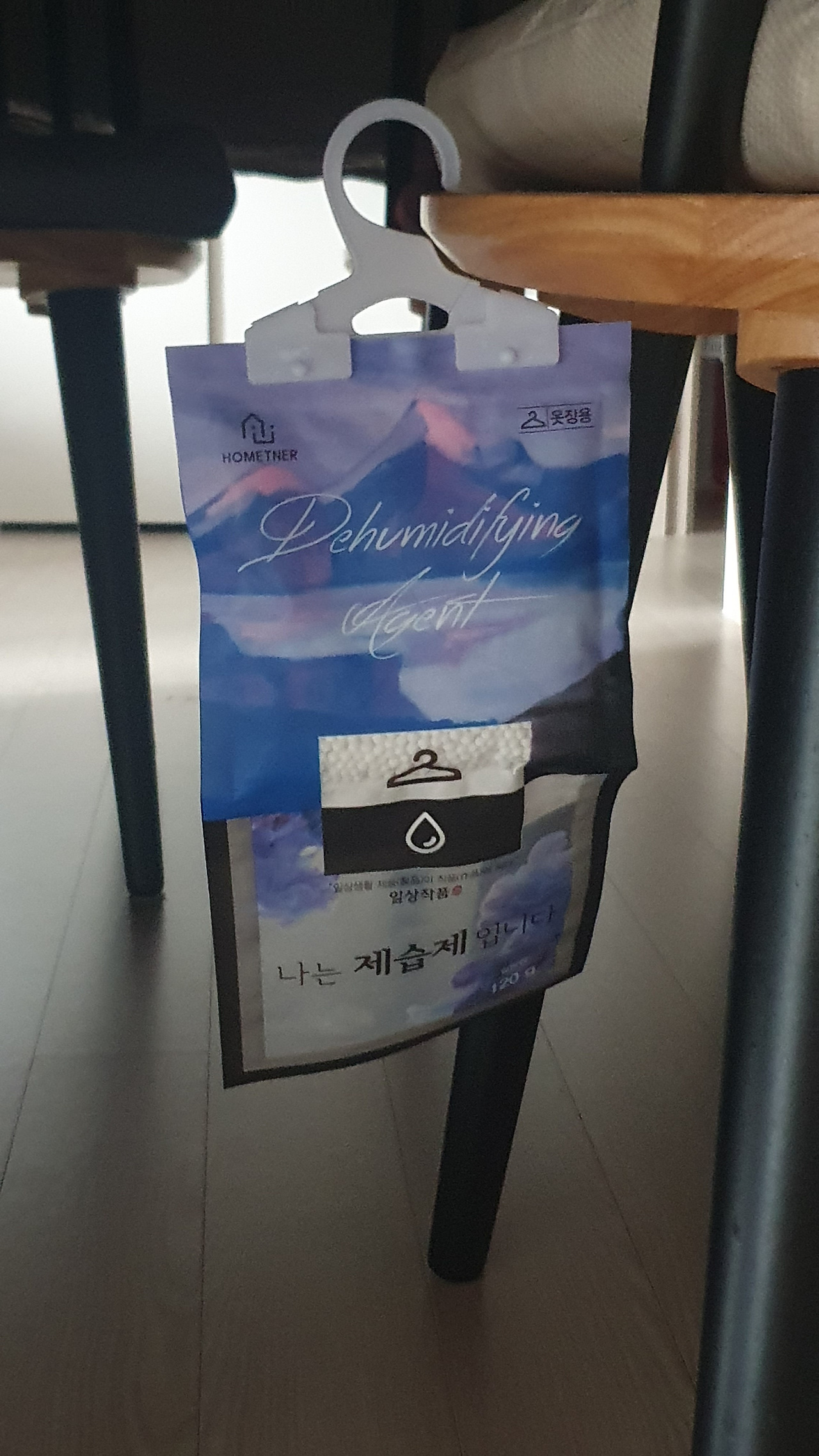 식탁 중앙에 2리터 생수병을 세워두어 식탁면과 이불 면이 맞닿지 않게 했고 틈틈이 이불을 펄럭거려주라며 나에게 신신당부했다. 식탁 아래에는 제습제를 두 개나 매달아 두었다. 한치의 잔여 수분도 허용치 않으려는 의지였다.