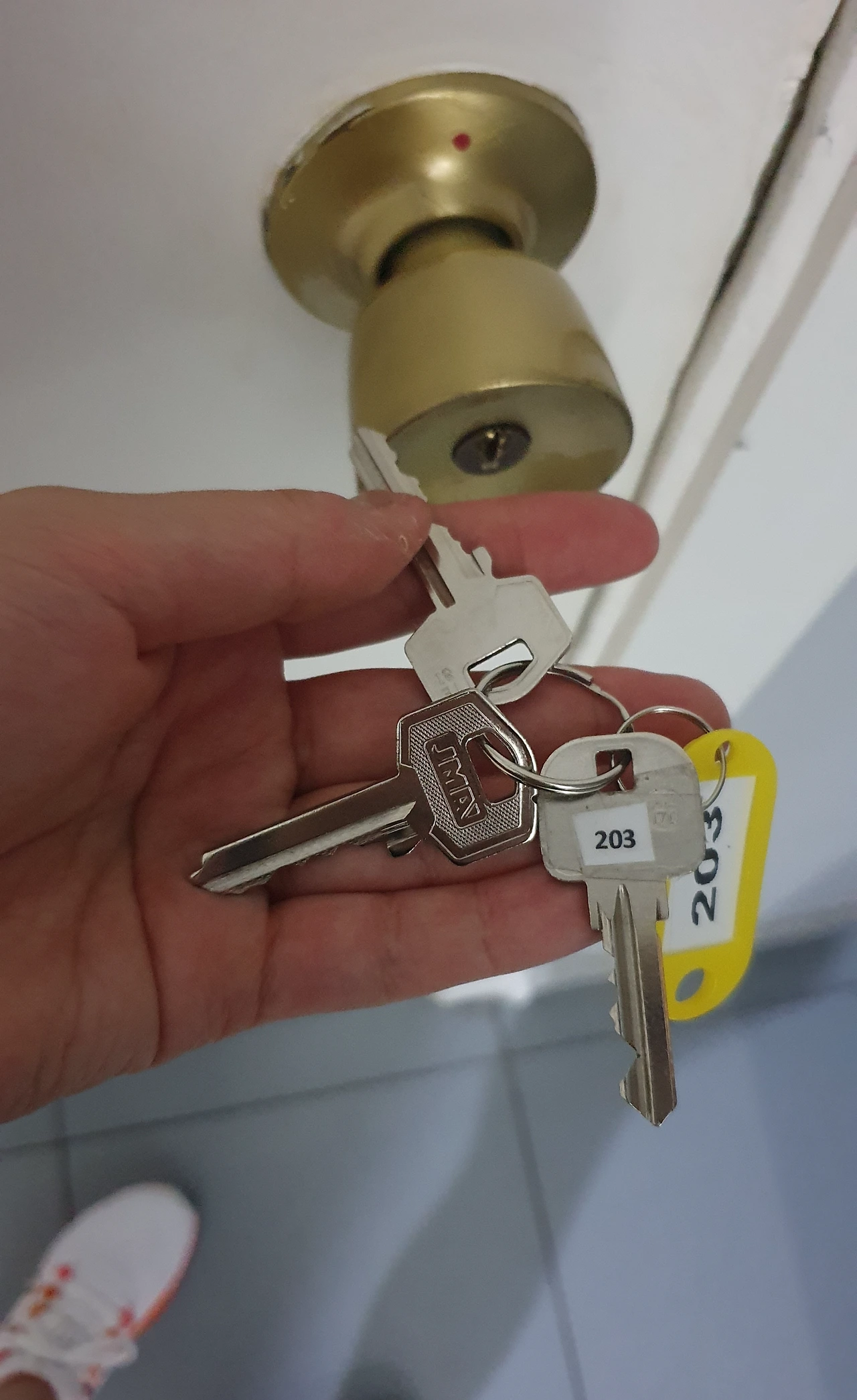 변기는 고정이 안 되어있어 볼 일 볼 때마다 사방으로 덜컹거렸고, 일정 각도로 맞춰야만 물이 내려갔다. 발코니에는 옆 방에서 내놓은 쓰레기가 굴러다니고 있었다. 구석 거미줄에 매달린 작은 거미는 오랫동안 방해받지 않은 듯 인테리어의 일부 같았다. 무엇보다 큰 문제는 방 문 손잡이가 덜렁거렸고 마음만 먹으면 누구든 부술 수 있는 상태였다는 점. 망가진 부분으로 문 밖이 살짝 보이는 것이 최악의 포인트였는데, 가끔 누군가 본인 방인 줄 착각하고 손잡이를 덜컥댈 때면 내 심장도 덩달아 덜컹 내려앉곤 했다.