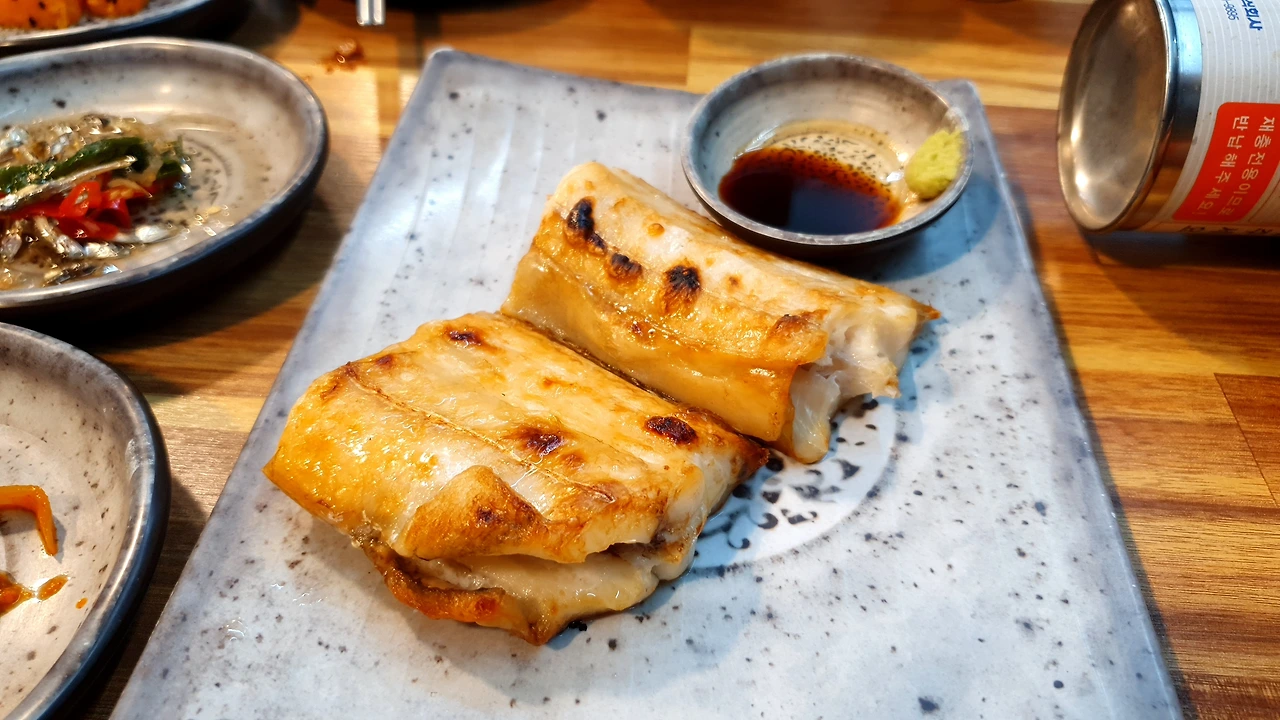 간장양념을 발라 숯불에 굽는 소갈비의 맛은 말해 무엇하냐지만 하이라이트는 오돌뼈떡갈비였다. 하나하나 손으로 다져 만드셨다는데 모양은 괴상했으나 구워서 입에 넣으니 술을 부르는 맛이다. 적당히 오독한 식감의 오돌뼈와 부드러운 잔 살들이 함께 씹히며 고소한 육즙을 뿜고끝엔 단짠양념과 어우러진다. 구워 먹으라고 주신 새콤한 백김치도 몇 번이나 리필했는 지 모른다.