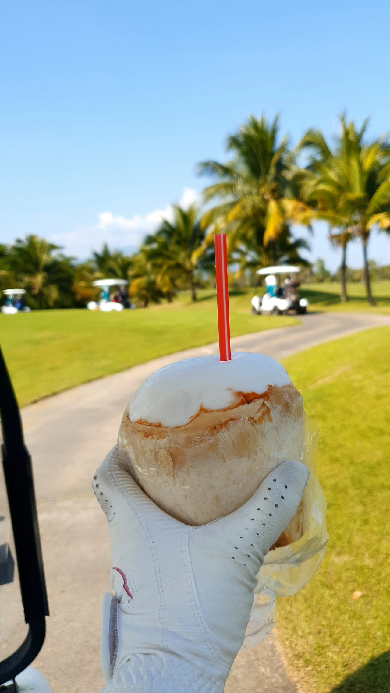 시원한 즙을 한 모금 빨아들이니 여태 먹어본 코코넛중 가장 달고 고소했고, 챙겨주신 숟가락으로 쫄깃담백한 과육도 손쉽게발라낼 수 있었다.그 자체로도 감동이지만 먹어보니 더 큰 감동이 밀려와 온 가족이 골프는 뒷전이고 먹느라 정신 없었다.이후 시장이나 식당 그 어디에서도 이 정도 퀄리티의 코코넛은 찾지 못했는데, 한국인이 수박을 잘 고르듯 태국인이 고른 코코넛은 뭔가 다른 모양이었다.