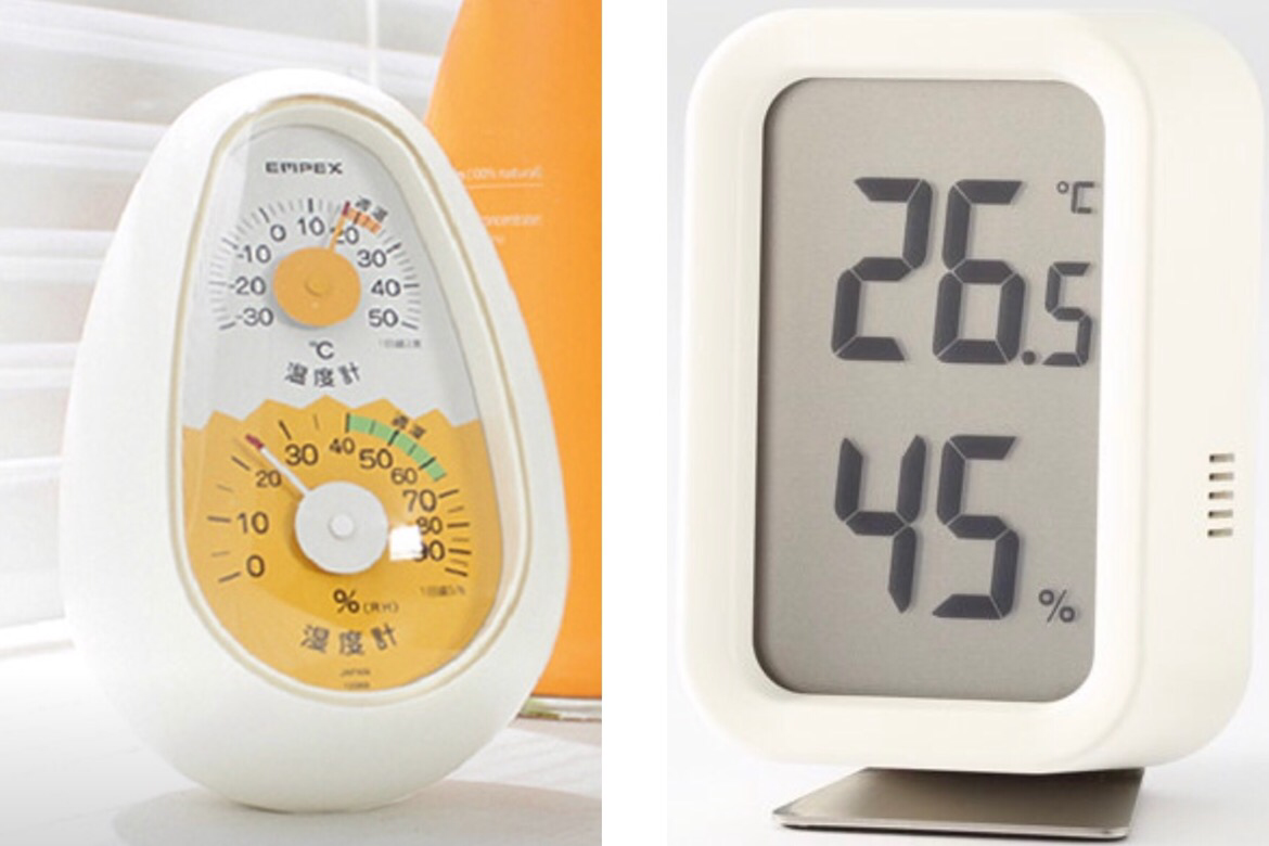 습도계는 크게 아날로그, 디지털 두가지가 있습니다. 일반적으로 아날로그가 조금 더 정확성이 높다고는 하는데 굳이 정밀계측을 할 목적은 아니기 때문에 굳이 좋은걸 살 필요는 없습니다. 차라리 싼걸 여러개 사서 방마다 두는걸 더 추천합니다. 오픈마켓에서 보통 10,000원 내외의 가격에 살 수 있습니다. 저렴하고 예쁜걸 사세요.