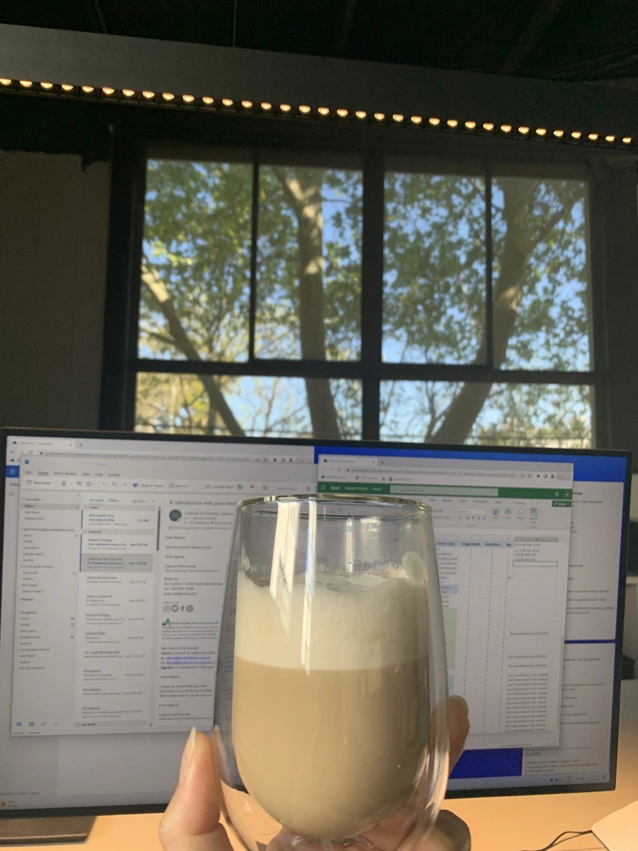 이렇게 소이 라테를 내리고 오면 하루가 시작된다. 우선 이메일을 열어보고 답장을 하고, 미팅 일정이 있는지 확인한다. 옆자리, 앞자리 코워커들과 잠깐 몇 마디 나누면 한 25분 정도는 제끼게 된다.