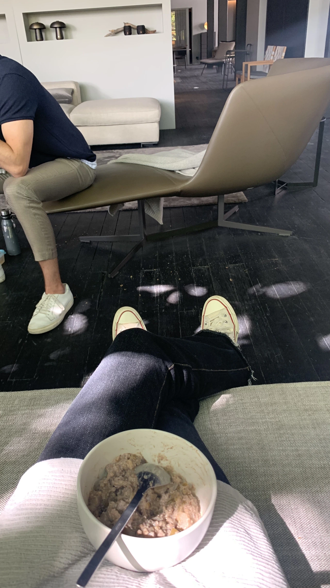 오피스가 쇼룸과 함께 있어서 디스플레이되어 있는 소파 위에 이렇게 앉아 모여서 먹기도 하고, 식탁이 필요한 날은 식탁 쪽에 앉아 있으면 코워커들이 같이 먹자고 그쪽으로 온다. 이날 점심은 오트밀을 싸왔는데 생긴 건 별로여도 달고 맛있다.