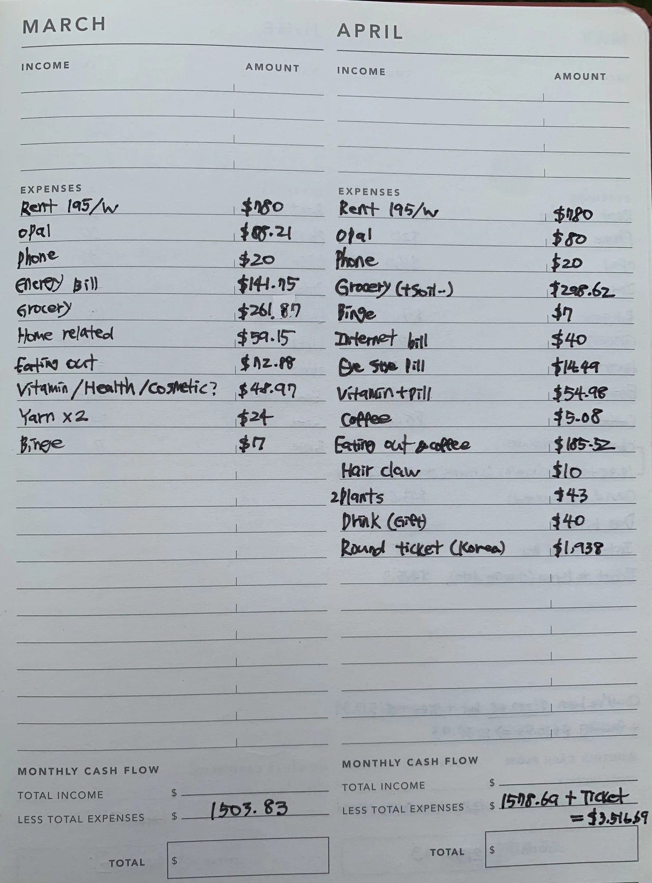 거기에 Netflix / Bing / Disney + 등 구독료가 있다면 합산해야 하고, 종종 쇼핑도 하고 가구도 사고하다 보면 지출은 늘어날 수밖에 없다. 친구들 생일이나 결혼식 비용처럼 고정지출이 아닌 것들도 많이 생기니 생활비를 미리 계획한다면 무조건 넉넉하게 생각해야 한다. 한국 친구들의 생일 & 결혼 축하 비용은 한국 계좌에서 썼으므로 생활비에서 제외했다.