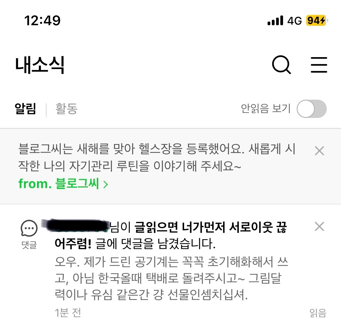 자신이 할 말만 남기고 돌아올 나의 답장을 감당할 수 없어 나를 차단하고 빠르게 도망간 그. 나는 그 일이 있었던 당일, 그와 여전히 블로그 서로이웃으로 되어있는 것을 보고 안부인사를 남기는 곳에 답장을 남겼었다.