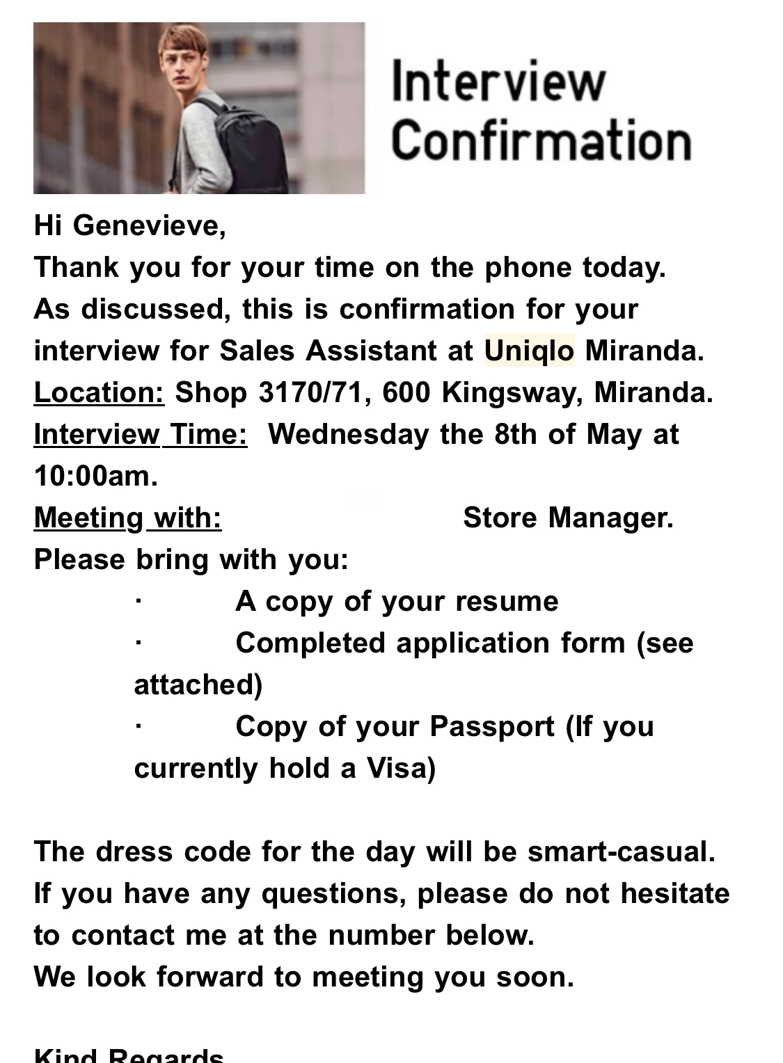 이왕이면 법의 보호를 잘 받고 있고 체계적으로 잡혀 있는 큰 회사에 입사를 하고 싶었다. 그래서 유니클로에 이력서를 보냈고, 면접 제안을 받게 되었다.