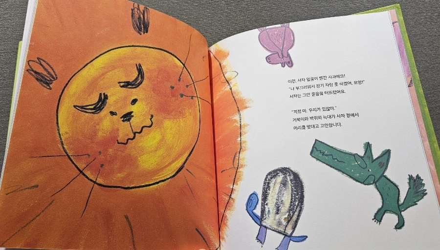 삥에게 이 그림책을 왜 샀는지 설명해주었더니 곰곰히 듣는다.
