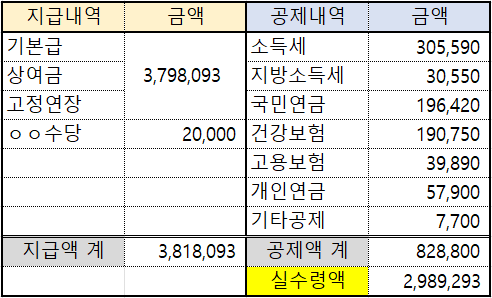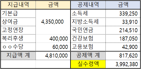 ㆍ공제 : 약 80만원(세금 등)