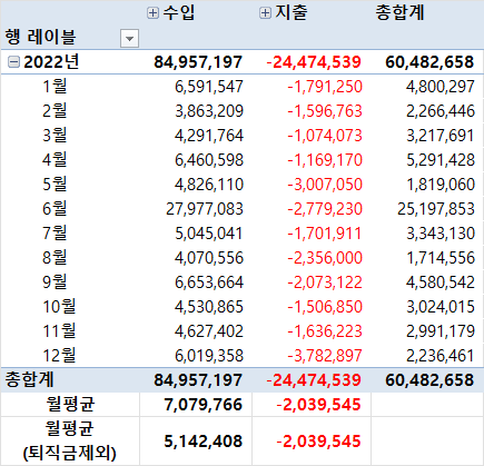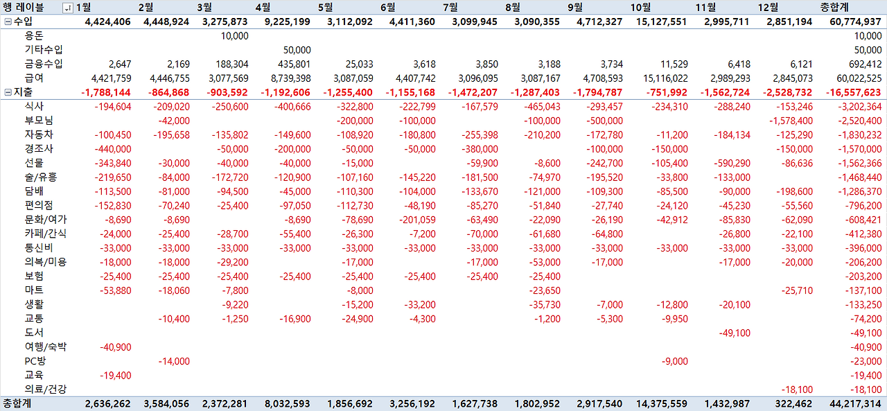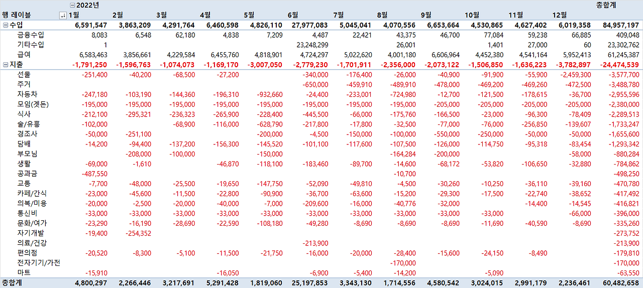 ㆍ수입 - 지출 : 60,482,658 (월평균 5,040,221원)
