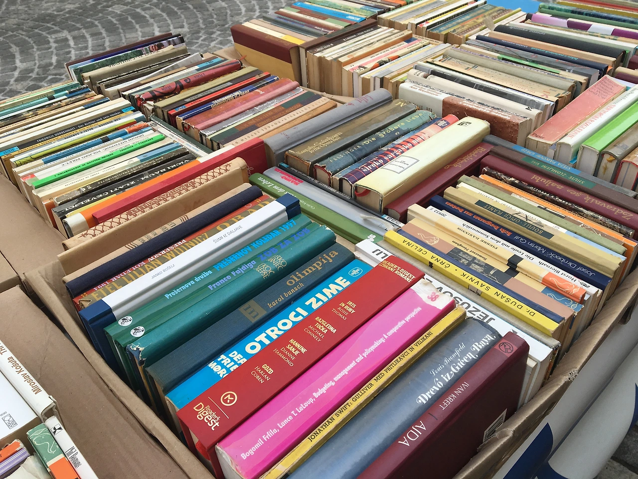 류블랴나 올드타운 골목길 어느 헌책방에서 내놓은 읽지 못할 언어의 책들.