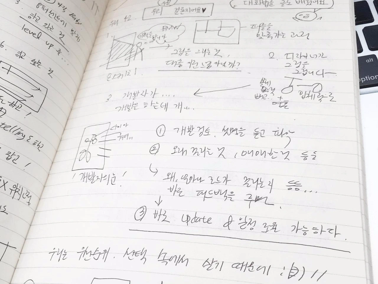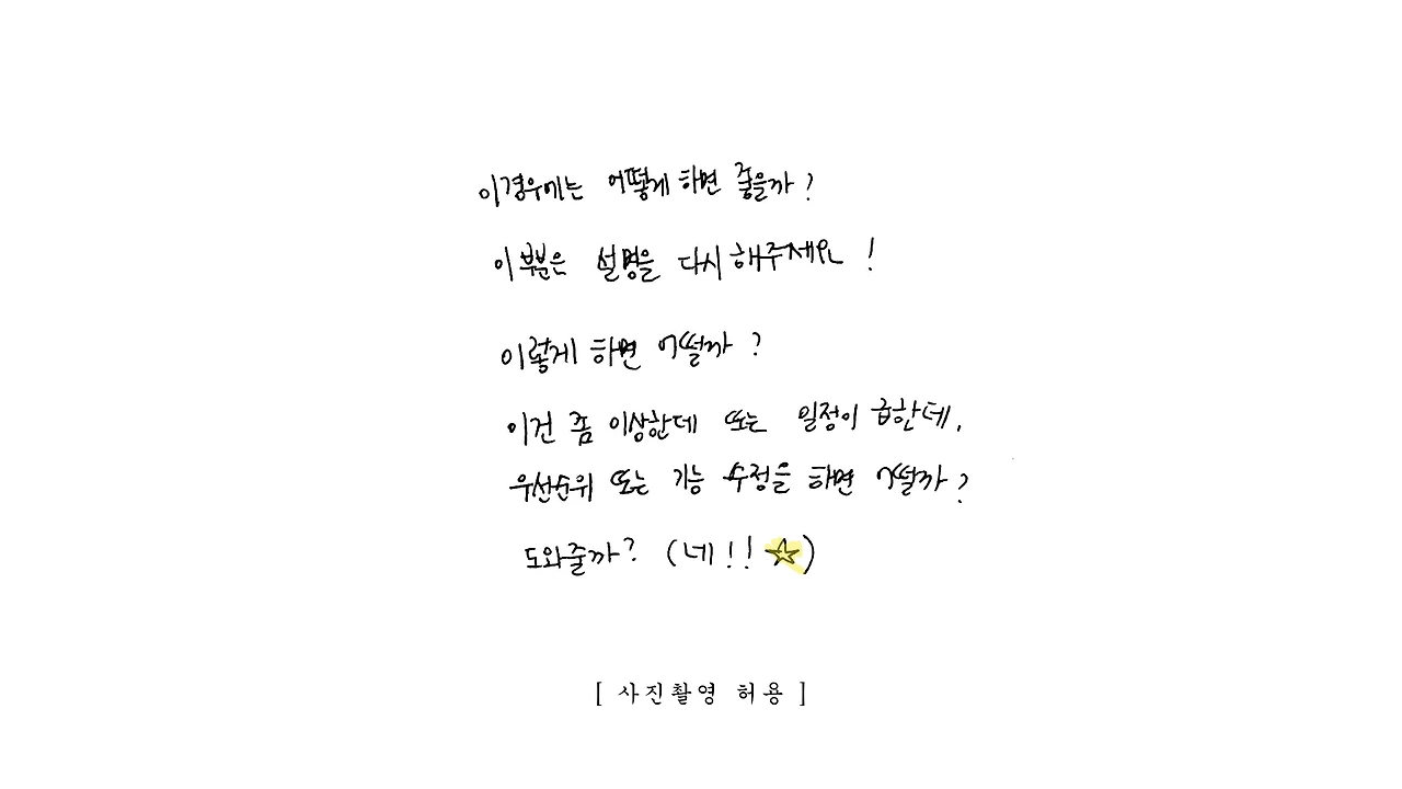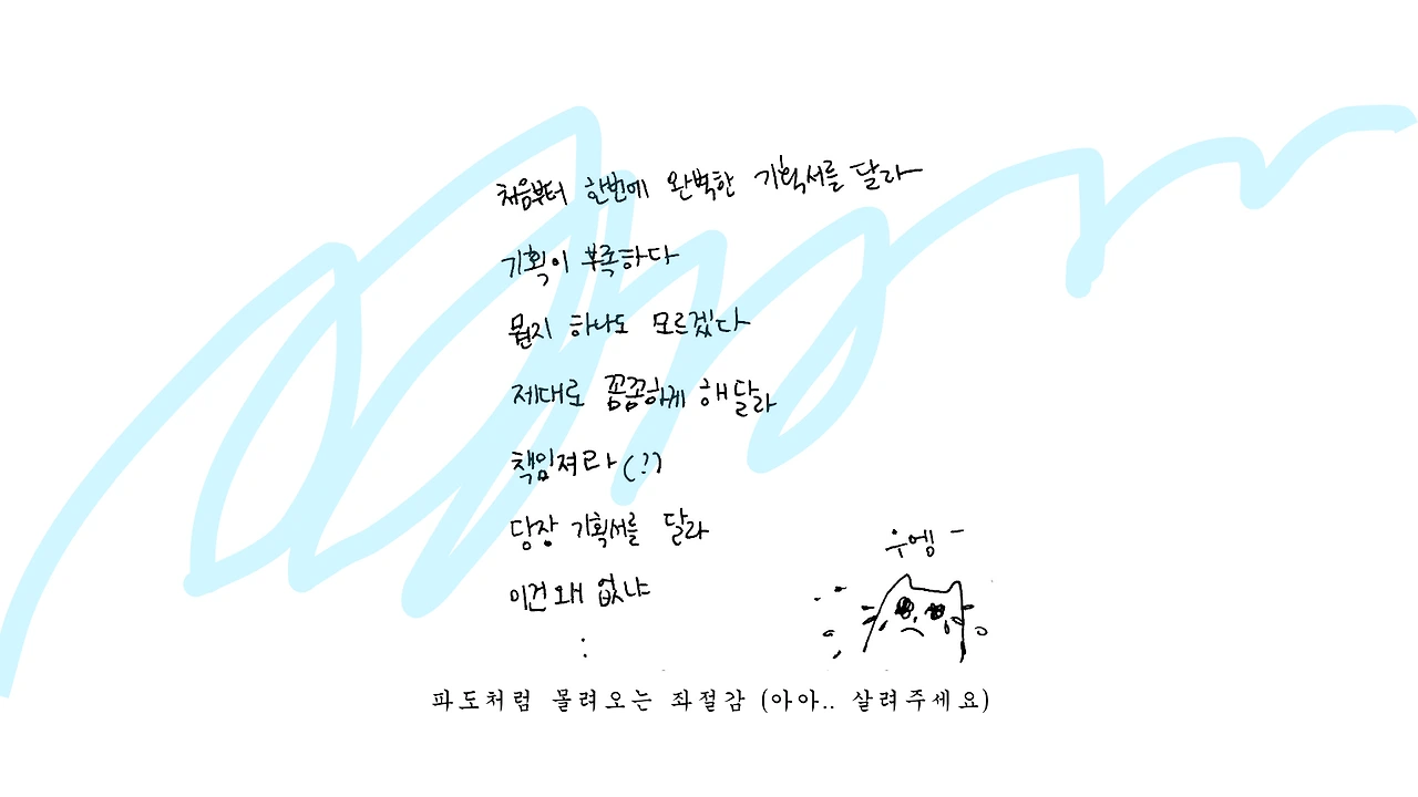 이제는 가물가물하지만 파워포인트보다 손 스케치가 익숙했던 미대 출신. 초반 기획부터 개발 구현까지 폭넓게 얽혀있기에 다양한 사람과 일을 한다. (작은 일에도 큰 일에도 손이 가요 손이 가)