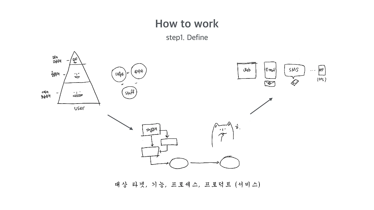 어떤 서비스/기능을 누구를 대상으로 제공할 것인지, 현재 프로덕트에 어떤 형태로 반영되어야 할지, 프로세스 상에서는 어떤 단계에 넣어야 할지...