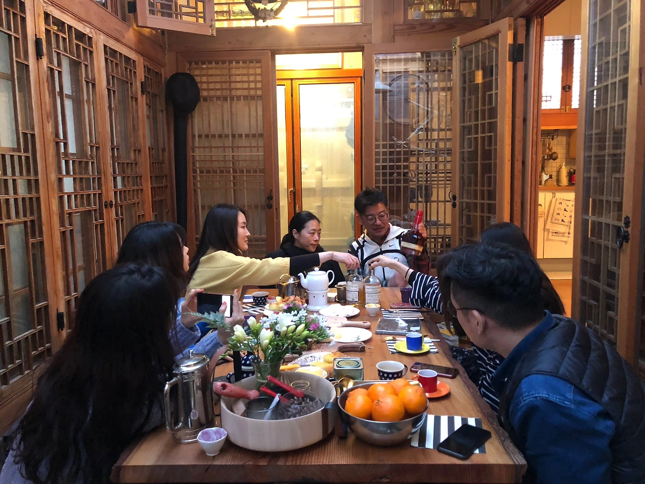 서둘러 앉은자리에서 눈이 바빠졌다. 호스트 두 분, 남의 집 문지기 한 분, 초대된 손님 여섯 분.