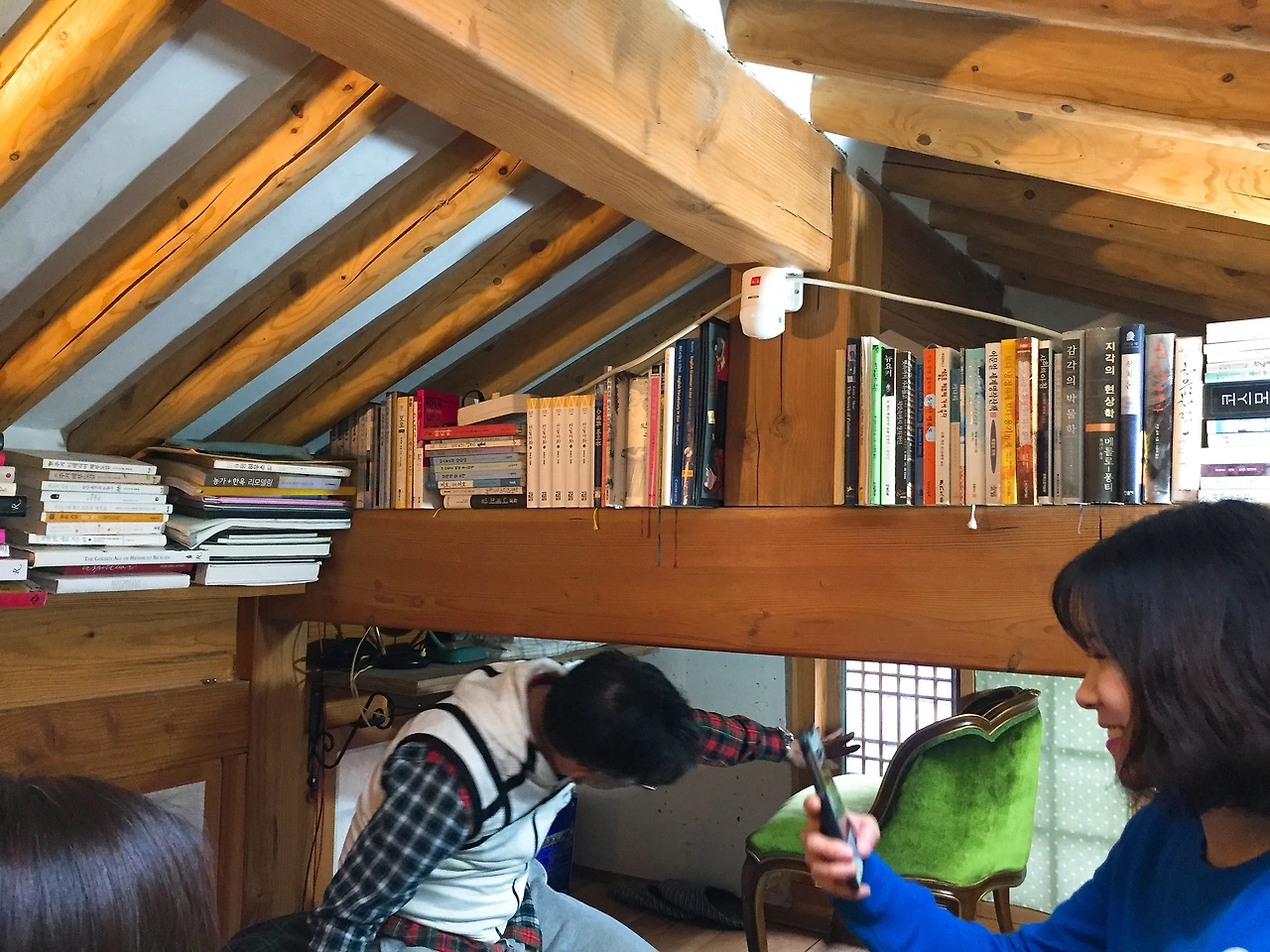 빗소리가 들리는 한옥은 운치가 있고 눈 오는 풍경이 느껴지는 천장 창문은 또 아름답겠지. TV가 있는 아파트 거실 대신에 마당과 테이블이 있는 한옥이 주는 라이프 스타일. 그리고 다락방은 한옥 로망의 꽃.