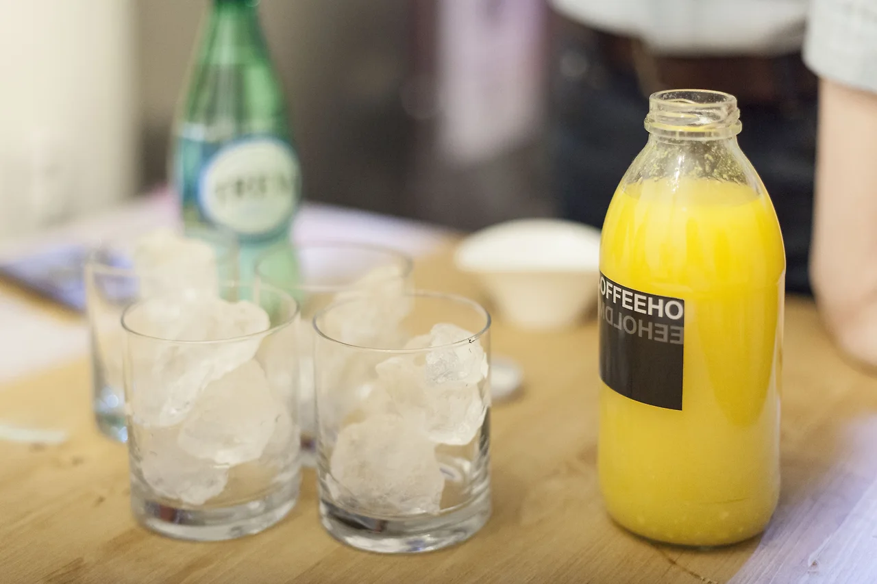 살구향이 나는 리큐르(디사론노 Disaronno)에 오렌지주스, 탄산수를 적절한 비율로 섞으면 그 맛이 참 감미로웠다. 섬세하게도 자주 가는 단골 커피집에서 100% 생과일 오렌지주스를 사 왔다.