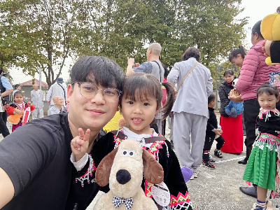 "삼촌 고마워요! 같이 사진 찍을래요!"