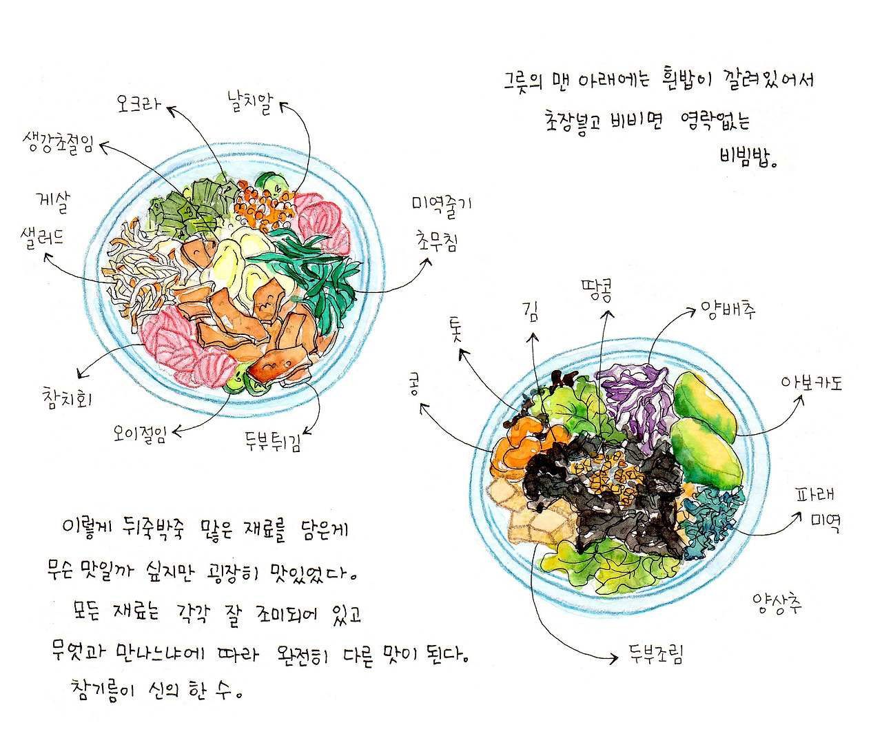 쌀밥을 베이스로 양념한 각종 채소와 해조류, 신선한 회를 소스에 비벼먹는다니, 느끼한 음식에 지친 나에게는 반가운 음식이 아닐 수 없었다.