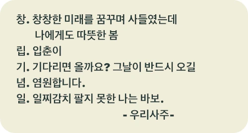 독자로부터 오해 없이 이해되어야 한다. 설명이 필요하면 하상욱 스타일이 아니다. 읽는 순간 아!라는 감탄이 나와야 한다.